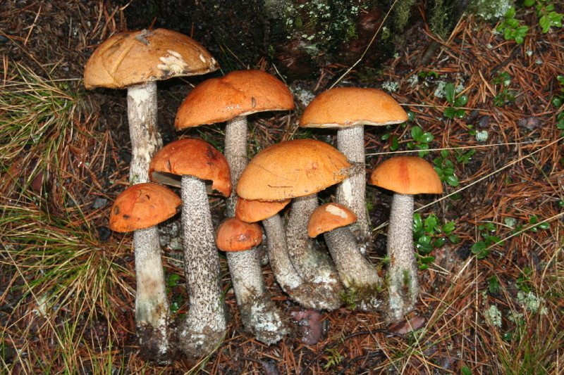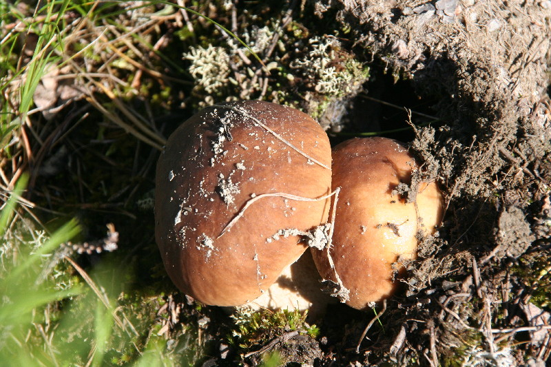 Was sehen wir da nach dem Fotografieren? Einige junge Steinpilze und Rotkappen strecken ihren Kopf aus der vom Regen noch feuchte Erde. Somit scheint auch unser heutiges Abendessen gesichert.
