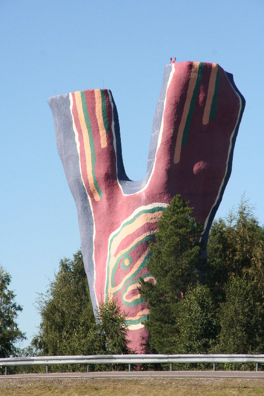 An der Ausfahrt zum Flugplatz Midlanda sehen wir dieses 30 m hohe Kunstobjekt aus Beton des Künstlers Bengt Lindström.
