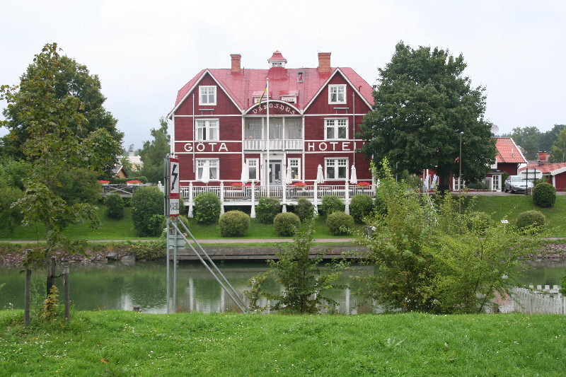 Trotz wieder einsetzendem Regen biegen wir ab Richtung Motala. Als wir im April hier waren, liefen Renovierungsarbeiten am Göta-Kanal. Jetzt interessiert es uns, wie das ganze mit Wasser und mit Betrieb ausschaut.