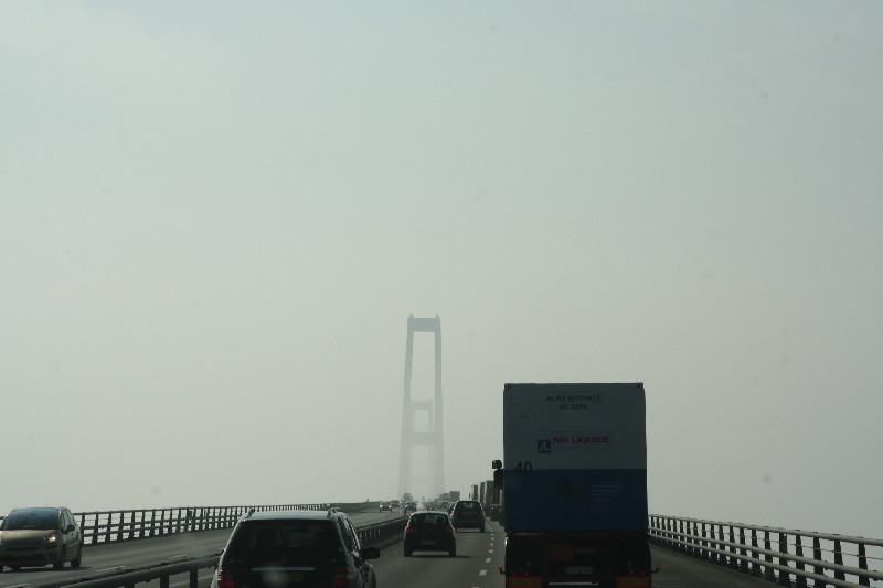 Auch die Storebelt-Brücke empfängt uns im Nebel.