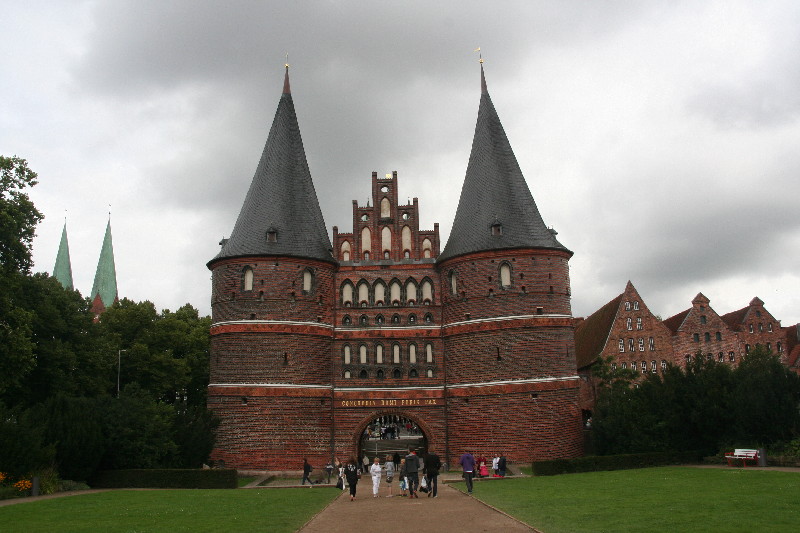 Wir fahren in strömendem Regen mit Hagelschlag über Bremen – Hamburg nach Lübeck. Da wir noch Zeit haben, wird ein Stadtbummel mit Besichtigung des Holstentores durchgeführt, bevor es weiter nach Travemünde zum Skandinavienkai geht, wo wir am Abend auf der „Nils Holgersson“ einchecken.