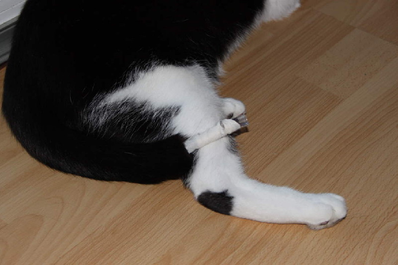 Er kanns nicht lassen. Er wird den Kampf gegen den Marder nie gewinnen. Zuerst war ein Stück abgebissenes Ohr. Bald jede Woche kommt er heim und sieht aus wie zerpflückt. Diesmal aber wollte er es wissen. Der Kampf ging mindestens 3 Minuten in tiefster Nacht. Ich konnte zwar zusehen, aber nicht einschreiten, da es auf einer "elektrischen" Pferdewiese war. So vor 4 Tagen kam er dann heim mit einem Durchbiss am linken Lauf. Den hat er sich jetzt so weit aufgeleckt, dass Gabi zum Tierarzt musste. Jetzt hat er Hausverbot und muss mit Krause rumlaufen. Dummer dummer Kater. Vielleicht regle ich das jetzt mal mit dem Marder. Ganz legal mit Lebendfalle und dann ein paar etliche km weiter wieder aussetzen.