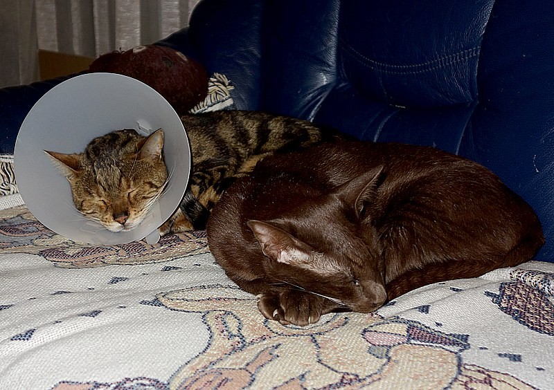 Als wenn sie es begriffen hätte, hat sie den Verband in Ruhe gelassen und den Trichter, den wir als Mahnung :D rumliegen ließen, immer mal wieder angefaucht.