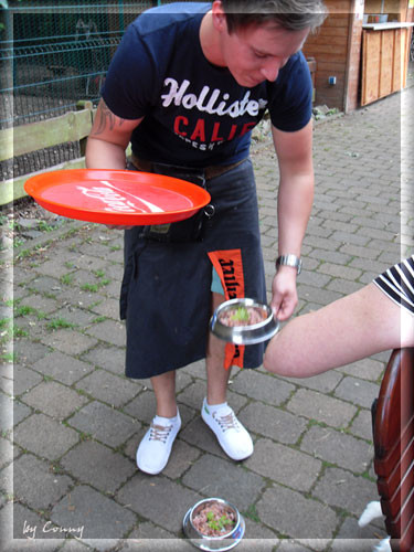die sich durch wedelnde Schwänze verirrten Hundehaare auf Speisen und Getränken sind wohl nicht für alle Restaurantbesucher ein Problem. Könnte mir vorstellen, dass Einige sogar genüsslich im Zwinger dinnieren könnten, wenn man bedenkt, wieviele mit ihren Lieben zusammen auf einem Kopfkissen schlafen........ Ist ja wie immer im Leben: Was dem einen Recht, ist für den anderen Schlecht. Wenn wir zum Essen gehen, bleibt unsere Pudeldame lieber im Womo oder im Auto. In einer Gaststätte wäre ihr eh der Trubel zu gross. Und wenn es zu Heiss ist immer Sommer, grille ich lieber vorm Womo selbst. Aber wenn wir aus dem Hause gehen, ist sie immer dabei. |