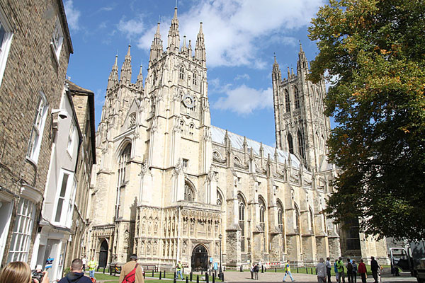Bei den Hosts meiner Tochter angekommen, haben wir erst mal den „Hausstand“ verladen. Als Ergebnis war die Heckgarage prall voll und ich hatte prima Druck auf der Hinterachse. Nach der Verabschiedung von der Host-Familie sind wir nun zu zweit gleich wieder retour Richtung Dover gefahren, um den Abend in Canterbury zu verbringen. London kennen wir schon zur Genüge und ich bin zudem auch kein ausgewiesener London-Fan. In Canterbury wollten wir am kommenden Sonntag noch die Kathedrale besuchen. Ich kenne diese zwar schon von vorherigen Englandaufenthalten, aber meine Tochter hatte es in ihrem England -Jahr noch nicht dorthin geschafft.