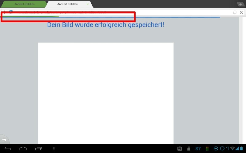 Hallo Annette, aber das ist doch in Ordnung. Du brauchst doch dann nur noch, wie ich in deinem anderen Posting schrieb, die beiden darunter befindlichen Eingabefelder ausfüllen und dann wiederum darunter auf Bild hochladen tippen. Erst dann wird das Bild hochgeladen und du kannst es sehen. Danach so weiter vorgehen, wie ich geschrieben habe. @brawo1 Und genau da hakt das Hochladen. Ich habe alles nach Deinen Anweisungen gemacht, ich habe die Eingabefelder ausgefüllt und anschliessend auf Bild hochladen gedrückt und dann tut sich nichts mehr.Deine Anleitung war ja ehr genau. Muss ich vielleicht die Einstellungändern, siehe posting an djjoerg Lg. Annette Nein, Annette, kann mir nicht vorstellen, dass es an den Einstellungen liegt. Aber man sollte auf die Frage von Jörg zurückkommen, welchen Browser benutzt du? An deinem Internet-Anbieter kann es nicht liegen. Ich empfehle für das Tab den Dolphin-Browser.