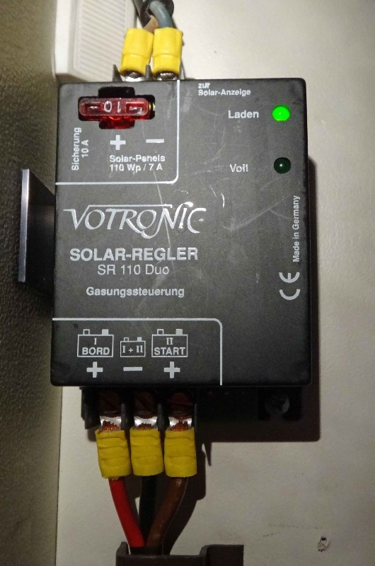 Hallo, Frage an die Profis: Wie schließe ich die neu erworbenen Koffer-Solar-Module an den bereits vorhandenen Solar-Regler an? Anbei das Foto vom vorhandenen Solar-Regler, oben ist der Anschluß des fest auf dem Dach montierten Solar-Moduls, unten die Anschlüsse von Bord- sowie Starterbatterie. Die Bordbatterie ist eine Gel-Akku. Danke für Eure Hilfe! Martin Wo ist das Bild... ![]() Ok, das Bild hab ich jetzt rein gekriegt. Wenn das Anklemmen des Solarkoffers dann auch so einfach wird, isses ja gut :D Kann man die beiden Kabel des Solar-Koffers einfach auf die vorhandenen Anschlußklemmen für das fest eingebaute Solarmodul dazu schrauben, oder geht das nicht? Was ist, wenn das Koffer-Modul Sonne hat und das Dachmodul im Schatten ist? Beeinflussen die sich gegenseitig? Danke für die Hilfe! Martin Da du nichts über die Leistung der bereits installierten Module und die Leistung des Koffers schreibst kann man erst mal garnichts sagen. Dein Regler macht bis maximal 7 A mit also ca. 80Wp an Solarpanelleistung insgesamt. Parallelanschluss ist möglich, sollte man aber aus verschiedenen Gründen in dieser Konstellation nicht tun. Eine (von mir) empfohlene Lösung ist ein 2. Solarregler. Andreas