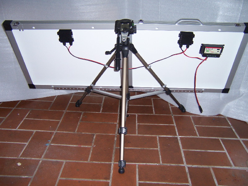 Danke nun weiss ich auch das noch und gebe jetzt Ruhe. Danke auch für alle anderen Hinweise und allen Bastlern ein "Gutes Gelingen"! Albert Hallo, erst einmal ein Danke an "raidy", der mich durch seinen Beitrag auf die jetzt günstigen Solarkoffer in der Bucht aufmerksam gemacht hat. Ich habe mir auch einen gekauft, gestern wurde er geliefert, echt sehr schnell. Heute habe ich ihn mir genauer angesehen und dabei festgestellt, dass die montierten Stützen bei Aufklappen gegen die weiße Kunststofffläche drücken, das kann auf die Dauer nicht gut gehen. Abhilfe: das Alu-Vierkantrohr an der Seite der Kunststofffläche etwas abschleifen, so dass das Vierkantrohr beim Aufklappen nicht mehr gegen die Kunststofffläche drückt ... Die Idee mit dem Stativ eines anderen Forummitglieds (a.miertsch) finde ich auch gut, vielleicht mache ich das auch so, habe eh immer eines für Fotos dabei ... Jedoch die Halterung mit einem langen Blechstreifen im unteren Bereich, wodurch das Zusammenklappen des mehrteiligen Panels verhindert werden soll, möchte ich mit Sicherungshaken machen ... Jetzt aber zum eigentlichen Grund meiner Wortmeldung: Die Lötanschlüsse zu den einzelnen Panels sind bei mir katastrophal ausgeführt, die Zugentlastung muss auch verbessert werden, es droht sonst früher oder später ein Kurzschluss des jeweiligen Panels. Hier drei Bilder: ![]() ![]() Hier das dritte (und wichtigste Bild), die Plusleitung war nicht angelötet, die Minusleitung (wohl weil es grad' so passte) an die Schraube angelötet: ![]() Hallo Mario, Jedoch die Halterung mit einem langen Blechstreifen im unteren Bereich, wodurch das Zusammenklappen des mehrteiligen Panels verhindert werden soll, möchte ich mit Sicherungshaken machen ... Das geht mit Sicherheit auch. Die Leiste bei mir hat an der Auflageseite div. Schlüssellochdurchbrüche und zwar in beide Richtungen. Die Paneele je 2 Zyl.-Schrauben, die Leiste, die ein Winkel ist, wird aufgelegt und wahlweise nach links oder rechts verschoben und sitzt fest. Sieht man in der Ansicht nicht, aber es funzt. Kannst auch einfach einen Expandergummi hintenrum spannen,musst dann nur die Scharniere nach vorn nehmen. Geht auch, aber es ist ein wenig klapperig. Zu den Lötverbindungen: da hast du Glück, dass du nachgeschaut hast. Mach mal die Zuleitungen zum Regler ab, blanker Draht einfach geklemmt und das noch nicht mal fest.Deshalb habe ich als erstes die Leerlaufspannung gemessen, um zu sehen ob das Teil überhaupt funktioniert. Aber, was willst du für115,-€oder weniger denn erwarten? Beim Pollin bezahlst du für 30 Watt 199€. Du wirst schon Deine Lösung finden, viel Glück und Gutes Gelingen. Albert Hallo Albert, danke für deine Info, die Leiste ist sicherlich eine gute Idee. Jetzt brauchen wir nur noch die Sonne :-) @Mario, bedenke aber, wenn du das Fotostativ verwendest, die Spreizprofile zu verlängern. Sonst steht das alles zu wackelich. Habe mit meiner Satschüssel da schon 4jährige Erfahrung. Albert