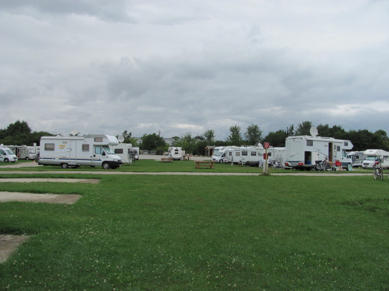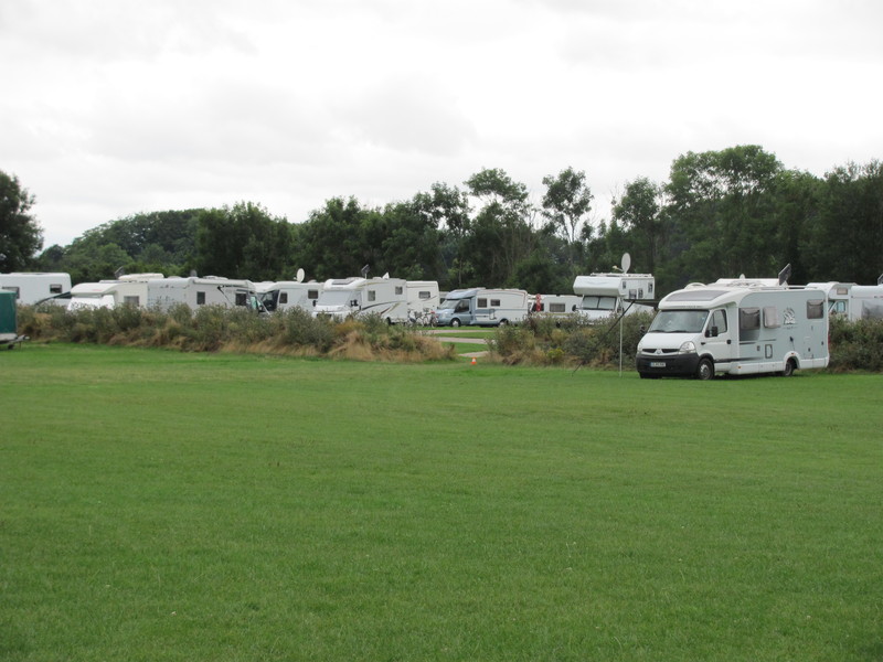 Bei schönen Wetter erweitert sich der Platz um die benachbarte Wiese, die Platz für hunderte Wohnmobile bietet.
