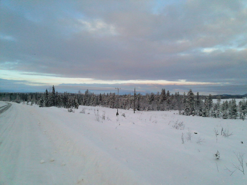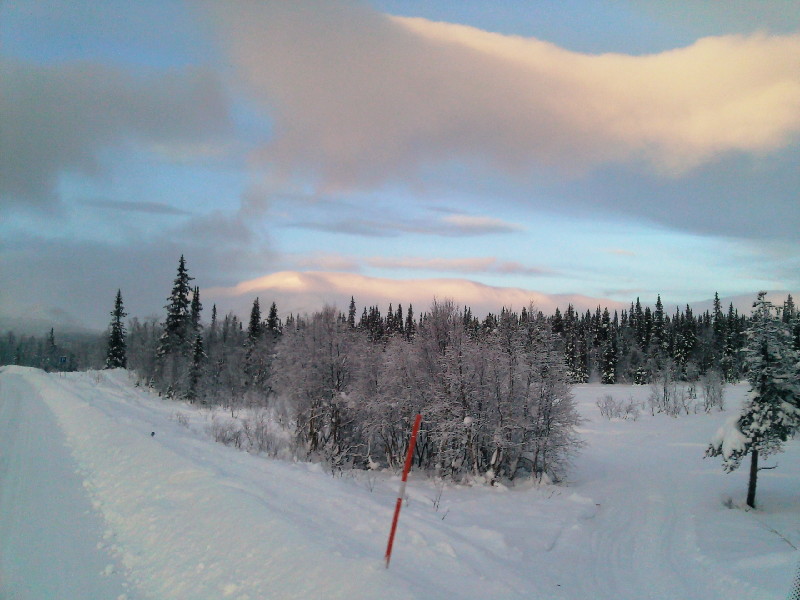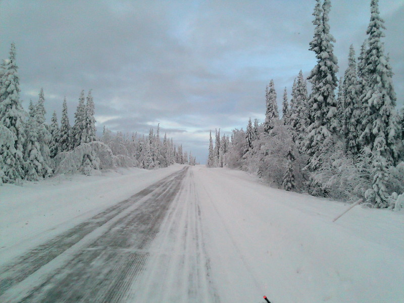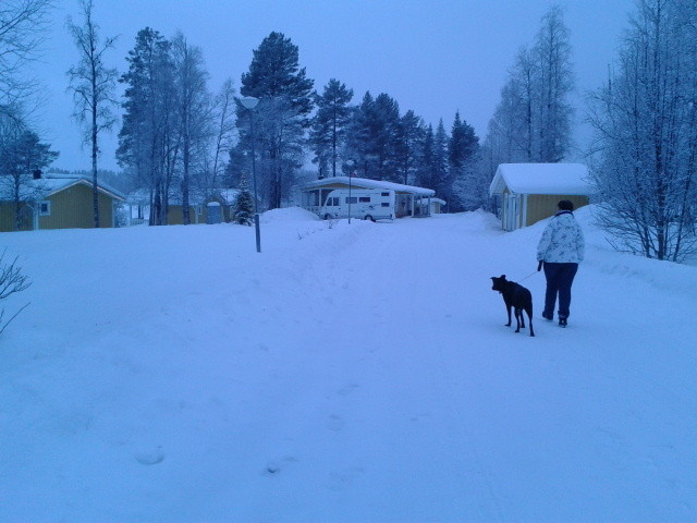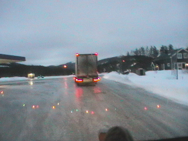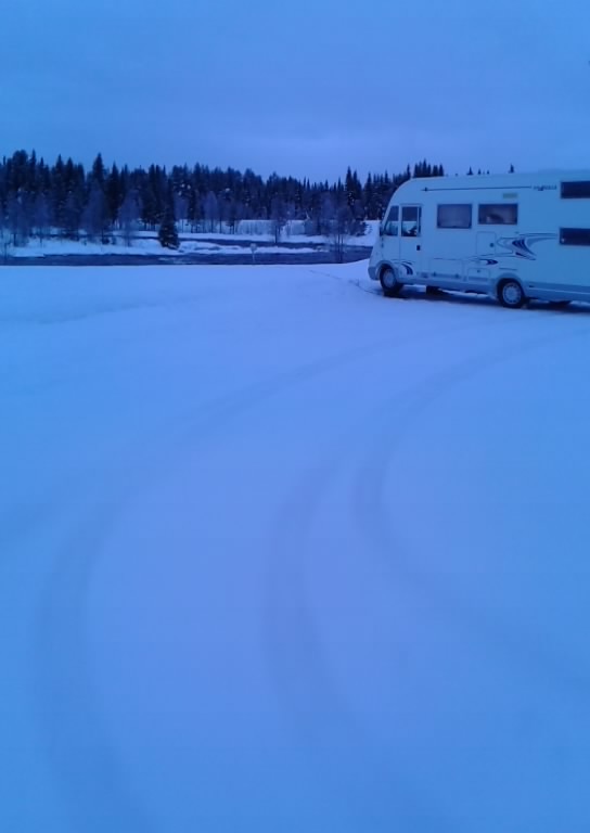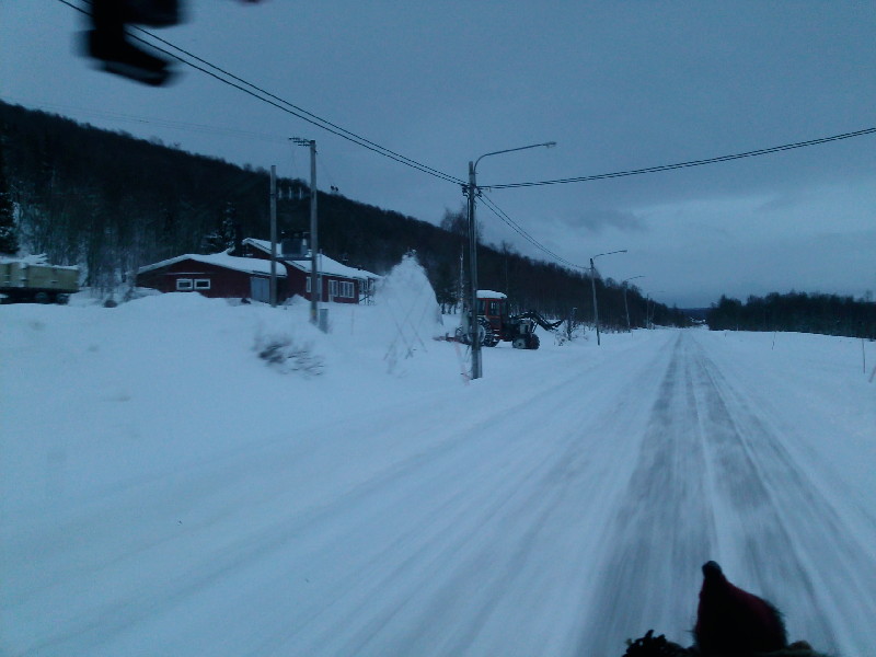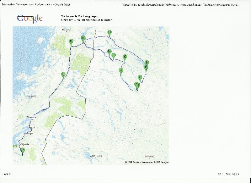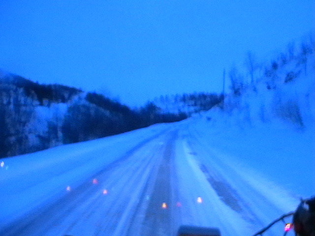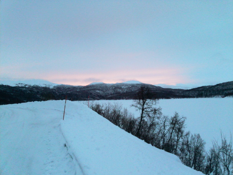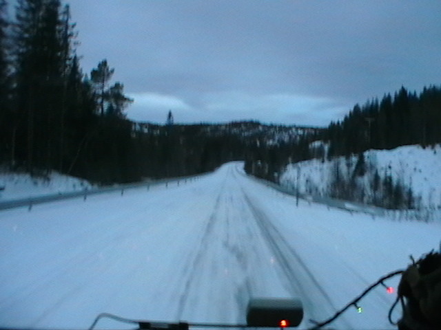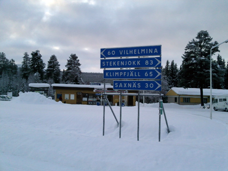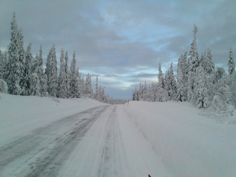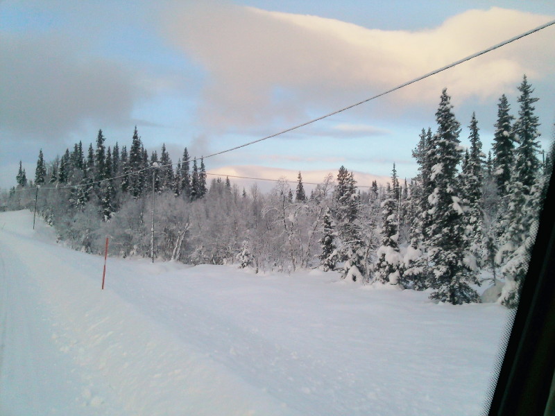 Bin gespannt, denn das ist noch zu wenig :wink: na denn mal los!!!! Bin gespannt! Auch auf den schwedischen Teil, wäre auch mal eine Variante. Südschweden ist uns nämlich (landschaftlich) zu langweilig... :roll: Also ich bin bereit. Es kann losgehen... Eigentlich hatte ich auf dem smartphone einen OSM-routentracker mitlaufen lassen, das hat auch gut funktioniert mit der touraufzeichnung, ich konnte die route mit dem vielen seitlichen abstechern auf der OSM-karte auf dem smartphone sehen aber habe es bis jetzt noch nicht geschafft, die aufgezeichnete route in den pc hochzuladen und sichtbar zu machen. Vielleicht kann ja einer von den GPS-experten mal helfen oder hat eine ander gps-tracking-app, welche die route bei googlemaps aufzeichnet, denn die OSM-karte scheint mir für Skandinavien nicht so optimal zu sein. Geplant war unsere abfahrt für freitagvormittag den 28.12.12, aber Annett mußte noch einen tag länger arbeiten, weil die vertretung erst am samstag beginnen kann und außerdem war am donnerstag und freitag ein fürchterlicher wintersturm in Mittelnorwegen, welcher mich zweifeln läßt ob wir überhaupt losfahren. In der nacht zum samstag stürmte es noch einigemal ordentlich mit in Norwegen sogenannten "Hauswacklern" und unsere Vicky hat sich unterm schreibtisch verkrochen. Am kücherfenster sieht das so aus. ![]() Aber :D am samstag früh war alles ruhig und 2 cm neuschnee haben alles wieder frisch und sauber winterlich verzaubert. Kurz vor 10.00 uhr sind wir abfahrbereit und es sieht so aus. ![]() Samstagvormittag ist üblicherweise noch wenig verkehr, aber der winterdienst auf dem Fv 705 in Selbu ist schon im einsatz. ![]() Unser erster stop ist wie üblich an der Statoil-tankstelle mit dem Selbutroll, ![]() um das erste mal unsere neuen Statoil-kaffee-abo-tassen für 2013 mit dem heutigen frühstückskaffee zu füllen. ![]() Mit frischem superheißem kaffee fahren wir dann weiter den Fv 705 nordwärts und am Selbu-skicenter ist die strasse noch schön winterlich aber sauglatt. ![]() Je näher wir aber dem Trondheimsfjord kommen um so weniger winterlich sieht es aus und nördlich von Stjørdal ist die E 6 voller schneematsch und einigemal bekommen wir vom gegenverkehr der schmutzigen schneematsch vor die motorhabe und windschutzscheibe gespritzt. ![]() Aber mit jedem kilometer weiter nördlich wird es mehr und mehr winterlich. ![]() ![]() Nördlich von Steinkjer wird dann auch auf der E 6 kein salz mehr gestreut und der winterdienst im wochenendmodus hat den neuschnee der letzten nacht noch nicht von der fahrbahr geschleudert. ![]() Aber der räumdienst kommt uns entgegen und um die mittagszeit machen wir hier eine kurze rast. ![]() Annett spielt mit dem hund im schnee und ich suche im autoradio einen gescheiten sender, welcher wintersport und besonders "Tour de Ski" live sendet. Mein gedanke, den winterdienst dann in nördliche richtung abzuwarten geht auf und gleich nachdem der winterdienst vorbei ist fahren wir auch wieder los - aber diesmal hinterher. ![]() Im autoradio hören wir die langlaufrennen der frauen und männer von der Tour de Ski und das skispringen der Vier-Schanzen-Turnee. Es wird immer mehr winterlich und ganz allmählich dunkel. ![]() ![]() Einige kilometer nördlich von Majavatn, wo der Rv 76 von Brønnesund kommend auf die E 6 stößt, kommen wir das erste mal auf die route des Sagavegen, welcher quer durch Skandinavien von der Helgelandsküste in Norwegen zur schwedischen Ostseeküste verläuft. In Trofors verlassen wir die E 6, dem Sagavegen weiterhin auf dem Rv 73 in richtung Hattfjelldal folgend, unserem heutigen tagesziel. Wir haben wieder glück und der winterdienst fährt vor uns. ![]() Wir erreichen Hattfjelldal ![]() und finden einen übernachtungsplatz mitten im ortszentrum gegenüber der kirche. ![]() Die außentemperaturen liegen um die 0°C und mal regnet es oder es ist nasser schnee - also von der ansicht schön winterlich aber von den temperaturen nicht so ideal. Die übernachtung in Hattfjelldal ist angenehm ruhig bis dann am nächsten morgen ab 5.30 uhr :!: :eek: - es ist sonntag :!: das "Konzert des norwegischen Winterdienstes" beginnt. Das konzert beginnt mit der "Ouvertüre der LKW-schneepflüge", weil es noch dunkel ist mit jede menge discolichtshow, im 5-minutentakt kommen die schneepflüge auf der hauptstraße ungefähr 50 m von uns entfernt vorbeigerauscht und drehen jedesmal einige ehrenrunden im nahen kreisverkehr bevor sie weiterfahren. Bei tageslicht sieht das ungefähr so aus. ![]() Nach einer kurzen konzertpause beginnt dann um 6.30 uhr die "Sinfonie des Kommunalen Winterdienstes von Hattfjelldal", natürlich auch wieder mit einsprechendem discolichtshow, nicht in so einem hohen tempo wie die lkw-schneepflüge daher aber in wesentlich kürzeren zeittakt werden die kommunalen wege, straßen und gehwege im ortszentrum von Hattfjelldal geräumt. Den schluß des winterdienstkonzertes leiten ein radlader mit einer riesigen schneeschaufel und ein traktor mit schneefräse ein, natürlich auch mit discolichtshow, welche im ortszentrum sämtliche parkplätze vor den geschäften, firmen, bank, post, hotel, rathaus, kirche und natürlich auch vor und neben dem Womo räumen und den neuschnee der letzten nacht auf die schon vorhandenen schneeberge schieben und fräsen. Um 7.30 uhr ist das sonntagsmorgen-winterdienst-konzert dann erfolgreich beendet und ich könnte ohne weiteres mit halbschuhen aussteigen ohne im tiefschnee zu stehen und nasse strümpfe zu bekommen. Es sind ca. -2°C, nicht mehr so naßkalt und eine wunderbar klare luft als ich gegen 8.00 mit dem hund die morgenrunde mache. ![]() ![]() Gegen 8.30 uhr, nach morgenroutine und frühstück, ist es immer noch nicht hell, aber wir fahren trotzdem los in den tag hinein. Auf der weiteren tour verlassen wir wieder den Sagavegen und folgen dem Rv 73 über das Krutfjell, ![]() es wird langsam heller ![]() ![]() ![]() unterwegs finden wir noch dieses wunderbar weihnachtlich gesch