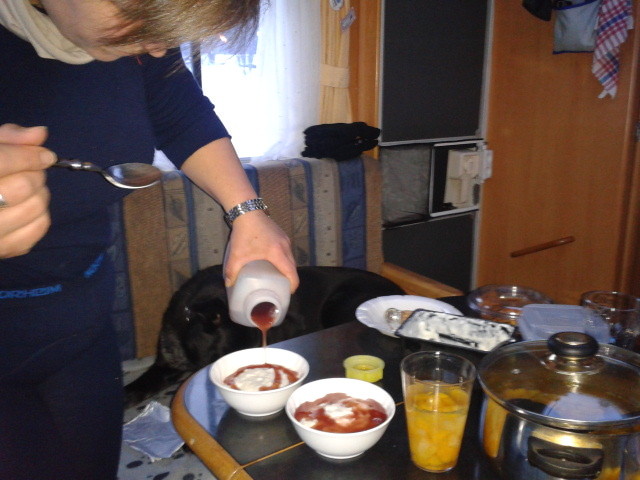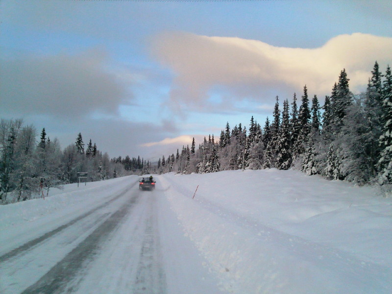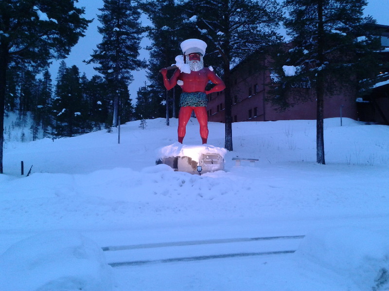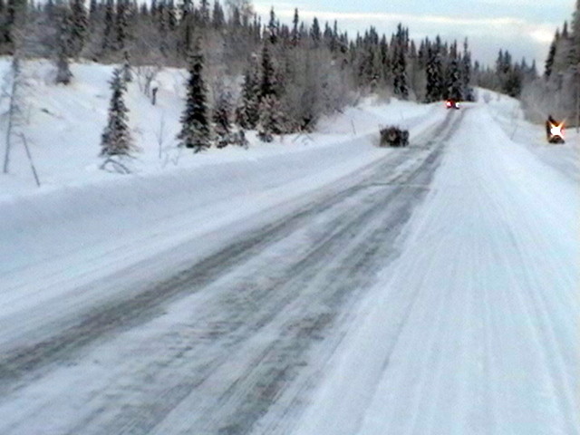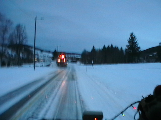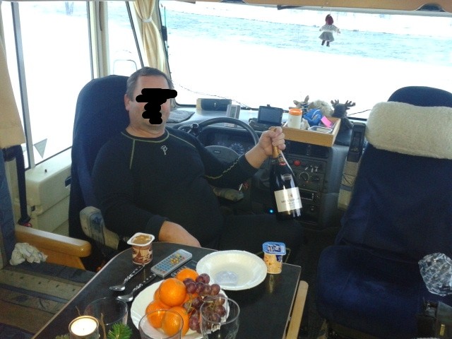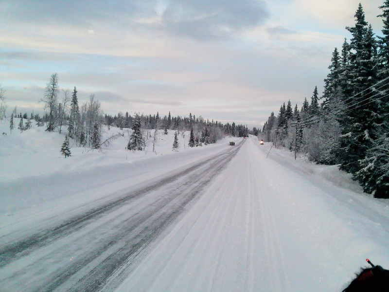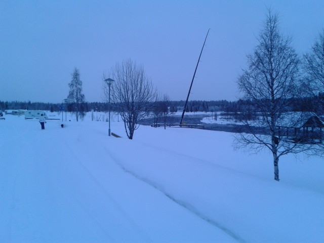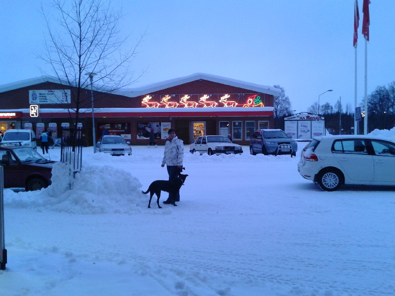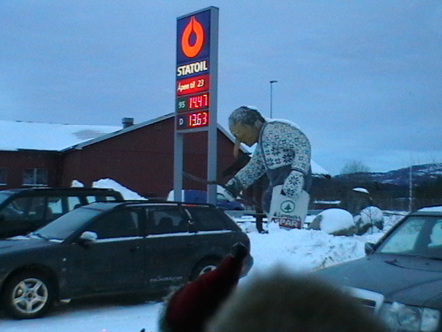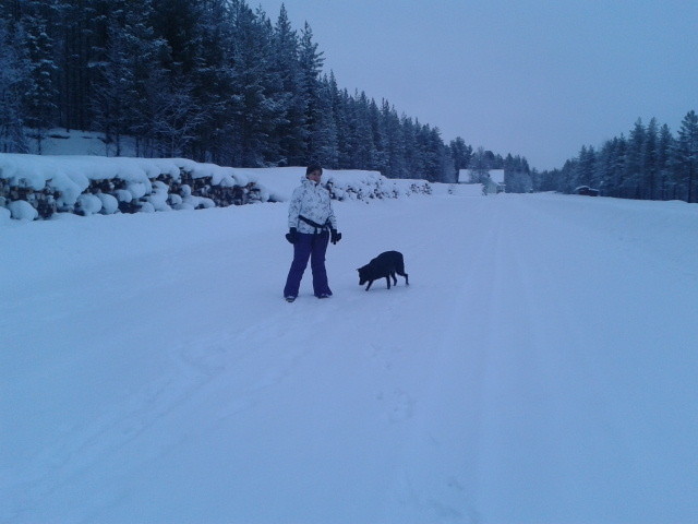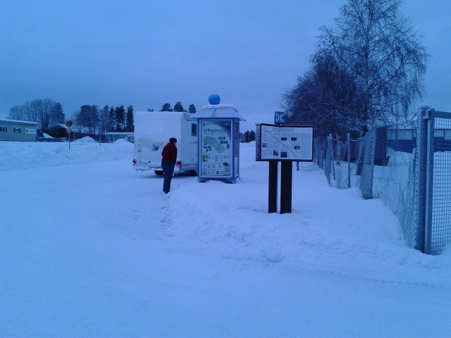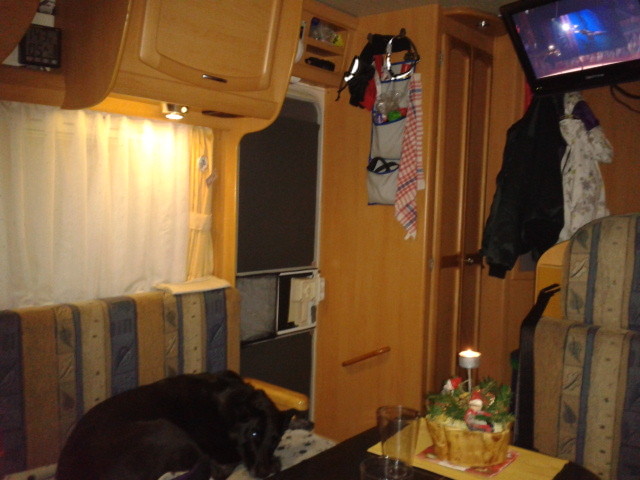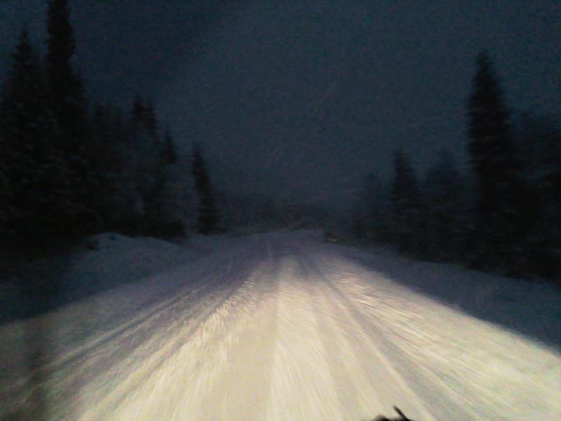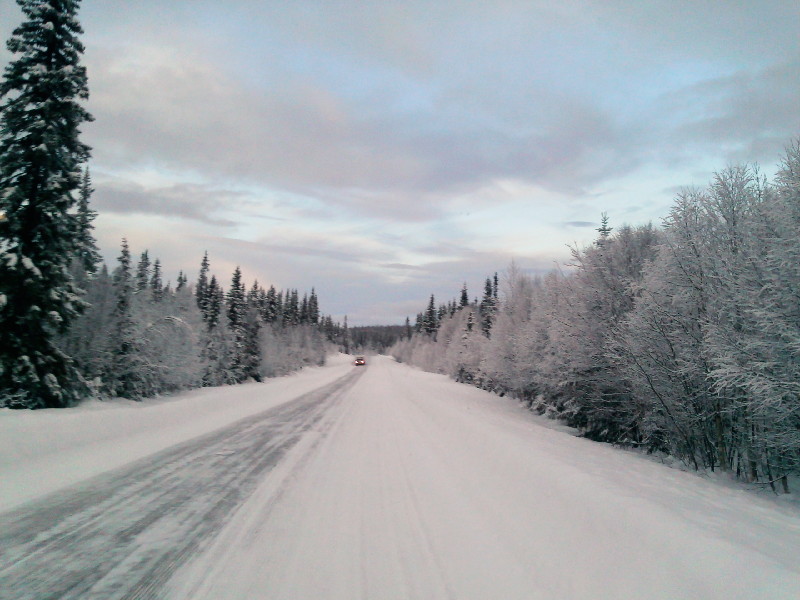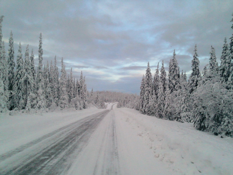 Bin gespannt, denn das ist noch zu wenig :wink: na denn mal los!!!! Bin gespannt! Auch auf den schwedischen Teil, wäre auch mal eine Variante. Südschweden ist uns nämlich (landschaftlich) zu langweilig... :roll: Also ich bin bereit. Es kann losgehen... Eigentlich hatte ich auf dem smartphone einen OSM-routentracker mitlaufen lassen, das hat auch gut funktioniert mit der touraufzeichnung, ich konnte die route mit dem vielen seitlichen abstechern auf der OSM-karte auf dem smartphone sehen aber habe es bis jetzt noch nicht geschafft, die aufgezeichnete route in den pc hochzuladen und sichtbar zu machen. Vielleicht kann ja einer von den GPS-experten mal helfen oder hat eine ander gps-tracking-app, welche die route bei googlemaps aufzeichnet, denn die OSM-karte scheint mir für Skandinavien nicht so optimal zu sein. Geplant war unsere abfahrt für freitagvormittag den 28.12.12, aber Annett mußte noch einen tag länger arbeiten, weil die vertretung erst am samstag beginnen kann und außerdem war am donnerstag und freitag ein fürchterlicher wintersturm in Mittelnorwegen, welcher mich zweifeln läßt ob wir überhaupt losfahren. In der nacht zum samstag stürmte es noch einigemal ordentlich mit in Norwegen sogenannten "Hauswacklern" und unsere Vicky hat sich unterm schreibtisch verkrochen. Am kücherfenster sieht das so aus. ![]() Aber :D am samstag früh war alles ruhig und 2 cm neuschnee haben alles wieder frisch und sauber winterlich verzaubert. Kurz vor 10.00 uhr sind wir abfahrbereit und es sieht so aus. ![]() Samstagvormittag ist üblicherweise noch wenig verkehr, aber der winterdienst auf dem Fv 705 in Selbu ist schon im einsatz. ![]() Unser erster stop ist wie üblich an der Statoil-tankstelle mit dem Selbutroll, ![]() um das erste mal unsere neuen Statoil-kaffee-abo-tassen für 2013 mit dem heutigen frühstückskaffee zu füllen. ![]() Mit frischem superheißem kaffee fahren wir dann weiter den Fv 705 nordwärts und am Selbu-skicenter ist die strasse noch schön winterlich aber sauglatt. ![]() Je näher wir aber dem Trondheimsfjord kommen um so weniger winterlich sieht es aus und nördlich von Stjørdal ist die E 6 voller schneematsch und einigemal bekommen wir vom gegenverkehr der schmutzigen schneematsch vor die motorhabe und windschutzscheibe gespritzt. ![]() Aber mit jedem kilometer weiter nördlich wird es mehr und mehr winterlich. ![]() ![]() Nördlich von Steinkjer wird dann auch auf der E 6 kein salz mehr gestreut und der winterdienst im wochenendmodus hat den neuschnee der letzten nacht noch nicht von der fahrbahr geschleudert. ![]() Aber der räumdienst kommt uns entgegen und um die mittagszeit machen wir hier eine kurze rast. ![]() Annett spielt mit dem hund im schnee und ich suche im autoradio einen gescheiten sender, welcher wintersport und besonders "Tour de Ski" live sendet. Mein gedanke, den winterdienst dann in nördliche richtung abzuwarten geht auf und gleich nachdem der winterdienst vorbei ist fahren wir auch wieder los - aber diesmal hinterher. ![]() Im autoradio hören wir die langlaufrennen der frauen und männer von der Tour de Ski und das skispringen der Vier-Schanzen-Turnee. Es wird immer mehr winterlich und ganz allmählich dunkel. ![]() ![]() Einige kilometer nördlich von Majavatn, wo der Rv 76 von Brønnesund kommend auf die E 6 stößt, kommen wir das erste mal auf die route des Sagavegen, welcher quer durch Skandinavien von der Helgelandsküste in Norwegen zur schwedischen Ostseeküste verläuft. In Trofors verlassen wir die E 6, dem Sagavegen weiterhin auf dem Rv 73 in richtung Hattfjelldal folgend, unserem heutigen tagesziel. Wir haben wieder glück und der winterdienst fährt vor uns. ![]() Wir erreichen Hattfjelldal ![]() und finden einen übernachtungsplatz mitten im ortszentrum gegenüber der kirche. ![]() Die außentemperaturen liegen um die 0°C und mal regnet es oder es ist nasser schnee - also von der ansicht schön winterlich aber von den temperaturen nicht so ideal. Die übernachtung in Hattfjelldal ist angenehm ruhig bis dann am nächsten morgen ab 5.30 uhr :!: :eek: - es ist sonntag :!: das "Konzert des norwegischen Winterdienstes" beginnt. Das konzert beginnt mit der "Ouvertüre der LKW-schneepflüge", weil es noch dunkel ist mit jede menge discolichtshow, im 5-minutentakt kommen die schneepflüge auf der hauptstraße ungefähr 50 m von uns entfernt vorbeigerauscht und drehen jedesmal einige ehrenrunden im nahen kreisverkehr bevor sie weiterfahren. Bei tageslicht sieht das ungefähr so aus. ![]() Nach einer kurzen konzertpause beginnt dann um 6.30 uhr die "Sinfonie des Kommunalen Winterdienstes von Hattfjelldal", natürlich auch wieder mit einsprechendem discolichtshow, nicht in so einem hohen tempo wie die lkw-schneepflüge daher aber in wesentlich kürzeren zeittakt werden die kommunalen wege, straßen und gehwege im ortszentrum von Hattfjelldal geräumt. Den schluß des winterdienstkonzertes leiten ein radlader mit einer riesigen schneeschaufel und ein traktor mit schneefräse ein, natürlich auch mit discolichtshow, welche im ortszentrum sämtliche parkplätze vor den geschäften, firmen, bank, post, hotel, rathaus, kirche und natürlich auch vor und neben dem Womo räumen und den neuschnee der letzten nacht auf die schon vorhandenen schneeberge schieben und fräsen. Um 7.30 uhr ist das sonntagsmorgen-winterdienst-konzert dann erfolgreich beendet und ich könnte ohne weiteres mit halbschuhen aussteigen ohne im tiefschnee zu stehen und nasse strümpfe zu bekommen. Es sind ca. -2°C, nicht mehr so naßkalt und eine wunderbar klare luft als ich gegen 8.00 mit dem hund die morgenrunde mache. ![]() ![]() Gegen 8.30 uhr, nach morgenroutine und frühstück, ist es immer noch nicht hell, aber wir fahren trotzdem los in den tag hinein. Auf der weiteren tour verlassen wir wieder den Sagavegen und folgen dem Rv 73 über das Krutfjell, ![]() es wird langsam heller ![]() ![]() ![]() unterwegs finden wir noch dieses wunderbar weihnachtlich gesch