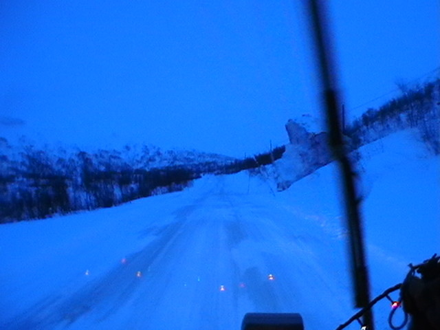 Nee, wir stehen beide noch im Berufsleben, müssen für unsre Brötchenbeschaffung noch was tun, und der Wecker klingelt um 5:55 :eek: Peter muss dann bis 17:00 in die Firma, und ich arbeite von daheim aus. Hab allerdings freie Zeiteinteilung. Das ist zwar ein Vorteil, aber auch ich bin ab 6:00 wach. @ Walter, aber bitte nicht zu viel retouschieren und den Schnee wegmachen, wir wollen die wunderbare Winterlandschaft in vollen Zügen geniessen. Wann gehts endlich weiter?????? :bild: Von wegmachen hab ich nichts geschrieben, hier in Selbu leiden wir in diesem jahr bis jetzt unter akuten schneemangel, was ich eigentlich bedauere, aber in diesem jahr bei unserem bauprojekt paßt das prima :D Weiter geht´s wenn der schnee schneeweiß ist ;D Hallo, es geht weiter :!: :D Jetzt werde ich schon auf meine eigenen bilder neidisch, denn bei uns in Selbu ist es zwar winterlich kalt :ill: aber keine krume schnee mehr da :cry: , noch nicht mal mehr im skisenter von Selbu auf dem berg an dem Fv 705 in richtung Stjørdal liegt genug schnee und geplante langlaufveranstaltungen müssen erstmal verschoben werden. Also die letzten 5 fotos nochmal, damit ihr seht, das es doch nicht so deprimierend grau in grau aussieht :D :D :D . ![]() ![]() ![]() ![]() ![]() na, was sagt ihr jetzt :?: :wink: und morgen abend, wenn ich meinen anderen schreibjob erledigt habe, geht´s vielleicht weiter :ja: Beeil dich mit deinem Schreibjob :D kann es kaum erwarten. Pelle :top: Um Klassen besser!!! Wäre jetzt wahrscheinlich sogar für Christel ("Tipsel") hell genug :D Gar kein Schnee bei euch? Heftig...! Da ersaufen wir ja dagegen mit unseren 4 cm im Neuschnee :D :cry: :D Wir hatten heute Sonnenschein :P Aber ich hab ja nix gegen die blaue Stunde. Ganz im Gegenteil. Es ist der schönste Teil des Tages. Nur wenn sie ständig andauert.... :roll: Die womoreise geht weiter und der winter wird immer winterlicher. ![]() ein hinweisschild für eine wintergesperrte straße an routenpunkt J bei Stalon ![]() wir wollen aber nicht dort lang sonder weiter richtung Dikanäs, doch vorher noch ein paar fotos von dieser abzweigung ![]() ![]() ![]() ![]() Dort steht auch diese große infotafel - aber man kommt nicht näher ran :D ![]() Die außentemperatur nur schlappe - 7,1°C auf der rechten wetterstation ![]() Linke wetterstation zeigt die temperarur in gefrierfach vom womokühlschrank, auch nur - 12,6°C, eigentlich zu wenig für ein gefrierfach, also stimmt hier irgendwas nicht :!: :?: :idea: die winterabdeckung des oberen kühlibelüftungsgitter ist sehr warm, deshalb demontiere ich die abdeckung und beseitige den wärmestau, im weiteren tagesverlauf sinkt dann die temperatur im kühligefrierfach bis auf - 24°C - das ist schon besser ;D . Dann fahren wir weiter. ![]() ![]() ![]() ![]() ![]() Dann kommt etwas ungewöhliches, jedenfalls für uns sieht es so aus, auf uns zu :eek: :eek: :eek: ![]() Könnt ihr schon was erkennen :D :?: ![]() Wir halten an und filmen und knipsen, denn sowas bekommt man nicht alle tage geboten :eek: . Muß jetzt erstmal die besten fotos noch vom video runterladen :wink: - könnt ihr warten :?: Du weißt, was ein Cliffhanger ist :lach: Hallo Walter, wunderbare Eindrücke hast Du uns mit deinem Bericht vermittelt. Wenn ich diese Bilder sehe, könnte ich mir tatsächlich vorstellen, trotz meiner Kälteallergie :), mal so eine Tour zu machen. (Träum) Ich warte auf eine Fortsetzung. ;) MfG Paule2
