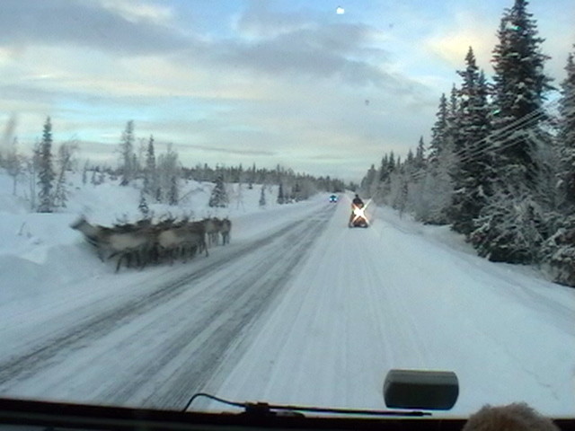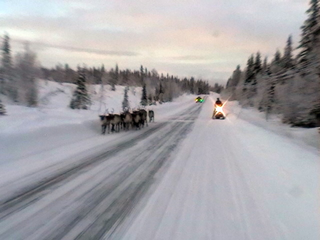 Ungern :) So mag ich den Winter, schöner Schnee in genügender Menge. Das lädt zu "outdoor"-Aktivitäten ein.... So, hab euch nun genug zappeln lassen :D . Einige fotos aus einem kurzen video von einer kleinen herde Rentiere, welche wahrscheinlich auf abwegen war und jetzt von ihrem besitzer mit helfern wieder in das gebiet zurückgebracht wird wo sie sich aufhalten sollen, denn die weidegebiete der verschiedenen rentierherdenbesitzer sind klar gekennzeichnet und abgegrenzt zueinander. ![]() ![]() ![]() ![]() ![]() ![]() ![]() ![]() ![]() ![]() ![]() Und hier kommt noch der freundliche gruß von IHR - dem "Rengirl" aus Südlappland :wink: . ![]() Das video ist natürlich wesentlich interessanter anzusehen, aber es war schon ein kleines erlebnis, obwohl wir schon zigmal Rentiere gesehen und fotographiert haben. Und nun noch die zwei besten fotos, welche doch etwas besser sind ![]() ![]() Je ein pkw vor und hinter der kleinen herde und die junge frau mit dem schneescooter wenn die Rentiere mal die straße nach recht oder links verlassen wollen. Weil es gerade hierher paßt eine frage: Wer weiß, warum der nördliche teil Schwedens, also nördlich von Dorothea eigentlich Lappland genannt wird, obwohl die bezeichnung "Lappe" für einen Schweden mit samischer abstammung eine beleidigung ist ? Walter, Du stellst aber knifflige Fragen. Ich versuchs trotzdem mal. :gruebel: Haut nicht gleich zu, wenns nicht stimmt. Lappland ist eine Region, die über Norwegen-Schweden-Finnland-Russland verläuft. Somit hat jedes dieser Länder seinen Teil von Lappland. Hallo :D , man kann nicht alles wissen, man muß nur wissen wo man es findet und nachlesen kann. - --> Link Uns war der etwas brisante gebrauch des wortes "Lappe" vorher schon bekannt, durch ein aufklärendes gespräch mit einer jungen Samin auf einer faschingsveranstaltung. Wir fragten nach der bedeutung ihrer kostümierung und benutzten unwissender weise dieses wort. Sie sagte uns das beides echt ist, also das kostüm ist ihre traditionelle Samen-tracht,auch sie selber samischer abstammung ist und auch samisch sprechen kann. Wir hatten wieder was dazugelernt und hatten damals (febr.2004) noch eine lustige faschingsfeier gemeinsam mit ihr und anderen. Wer im winter mal eine längere tour im norden Schwedens unterwegs ist kommt ganz schnell selbst auf meine erklärung von "Lappland". Wie ich schon mal geschrieben habe, sind die weidegebiete der Rentierherden voneinander mit langen zäunen durch das ganze gelände getrennt, damit sie sowenig wie möglich durcheinanderlaufen können. Da aber auch E- , reichs- , land- und kommunale straßen durch die weidegebiete gehen, welche nicht mit toren abgesperrt werden können, stehen rechts und links am straßenrand, wo die zäune aus dem wald kommen, lange pfähle und ruten an deren oberen ende leichte bunte stofflappen gebunden sind, welche sich im wind bewegen. Im sommer ist das meist nicht so auffällig, aber im winter stecken diese stangen oft sehr dicht in der schneekante am fahrbahnrand und die lappen wedeln im wind. Die Rentiere haben angst vor den wedelnden lappen und laufen somit nicht entlang der straße in andere weidegebiete. :D Meine erklärung zu " Lappland " :idea: erschien uns damals, im januar 2004 bei einer wintertour über Narvik - Kiruna - Eishotel Jukkasjärvi - Karesuandu - Tromø und zurück, sehr logisch und einleuchtend, wo wir jede menge Rentiere beiderseits und auf der straße gesehen haben. Und noch ein tip dazu : Kommt euch in Nordskandinavien ein fahrzeug mit eingeschalteter warnblinkanlage entgegen, dann wird nicht vor einem blitzer oder verkehrkontrolle gewarnt, wie ihr wahrscheinlich vermuten würdet, sonder vor, auf oder dicht neben der straße laufenden, Rentieren oder Elchen und dann heißt es die knipse oder die videokamera bereithalten ;D . Weiter geht´s dann, nachdem uns die kleine Rentierherde passiert hat bis zur nächsten abzweigung, wo wir dann links abbiegen. ![]() ![]() ![]() ![]() ![]() ![]() ![]() In der ferne sind schon die lampen der skianlagen von Kittelfjäll zu sehen - unserem heutigen tagesziel (routenpunkt L) ![]() Als wir dann in Kittelfjäll ankommen ist noch richtig was los auf den skipisten und demzufolge sind auch die parkplätze alle noch voll. Wir sind einfach zu früh schon hier um einen übernachtungsplatz zu suchen, also fahren wir weiter, jetzt etwas langsamer nach einen übernachtungsplatz suchend. Unzählig schöne mögliche übernachtungsplätze finden wir :) - wenn nur der schnee geräumt wäre :!: :( Nach ca. 16 km finden wir einen annehmbaren platz zum übernachten. Aber das schreib ich dann morgen :D . Walter, die von Dir angeführte Definition des Begriffs "Lappe" ist aber nur eine der vielen Möglichkeiten, die das Internet so ausspuckt. So zitiert Wikipedia z.B. "Der veraltete Begriff Lappe oder Lappen (plural) wird von vielen Samen als herabsetzend angesehen, obwohl der Begriff ursprünglich in einigen samischen Dialekten als Begriff für die Tätigkeit eines Rentierhirten verwendet wurde." In anderen Unterlagen wird ein Zusammenhang mit der Fellkleidung der Sami oder auch mit der geografischen Lage am oberen Rand des Kontinents hergestellt. Aber egal wie, Hauptsache wir können in diese schöne Gegend reisen. Unser übernachtungsplatz (routenpunkt M) ist ein stück geräumte fläche an der linken straßenseite. ![]() Der schnee war so hoch geschoben, das man nur im womo drüber gucken konnte - hier die aussicht. ![]() Bei näherer betrachtung sehen wir, das unser stellplatz sehr dicht an einer schneescooterspur ist und wir damit rechnen müssen, das da auch mal einer angefahren kommt. Es hat auch nicht lange gedauert bis der erste scooter kommt und wegen uns nicht genug schwung nehmen kann um über den zusammengeschobenen schnee zu kommen. Erst beim 4.anlauf immer dicht vorn vorm womo vorbei sausend hat es der scooterfahrer dann geschafft. Damit da nichts passiert parken wir dann nochmal um und jetzt haben die scooter auch genug 