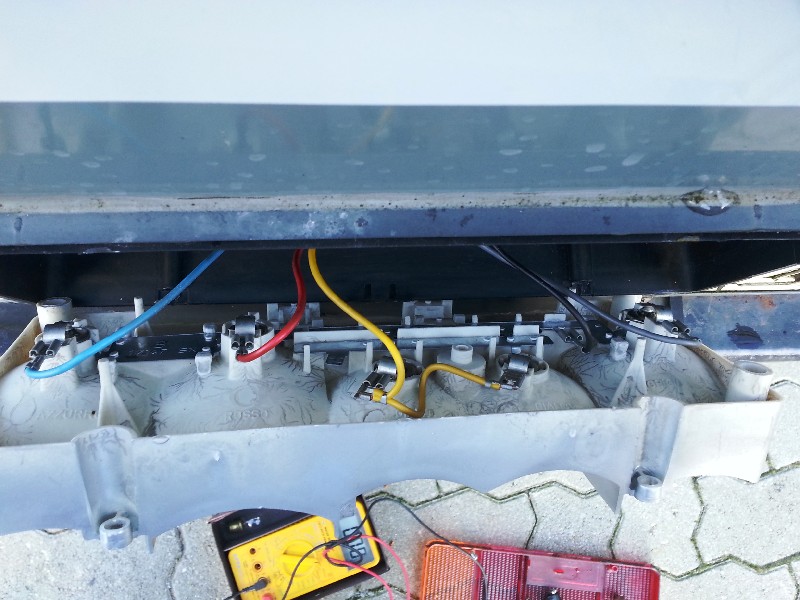 Hallonochmal, habe gerade die letzte Seite nochmal genauer gelesen, dabei fiel mir das "britzeln" auf. Das dürfte nicht sein. Bei einer sauberen Masseverbindung dürfte durch Dein zusätzliches Kabel kein Strom fliessen, und somit auch nichts britzeln. Klemm doch das Kabel nochmal an die Batterie (Minuspol) und führe es nach hinten, messe dann gegen die Masseplatine an Deinem Rücklicht (JA, richtig, gegen Masse!). Dein Messgerät muß jetzt NULL anzeigen. Wenn da jetzt ein Spannungswert gemessen wird hast Du doch eine schlechte Masseverbindung. Und sprüh da Mal WD40 ran, die sehen etwas oxidiert aus. Ich glaub zwar nicht daß da Dein aktueller Fehler liegt, kann aber vorbeugend nichts schaden. :) ![]() Habe thread gerade erst gelesen. Beim Überbrücken mit langem Massekabel direkt von der Batterie, war der alte Masseanschluss da ab oder noch dran? Masseanschluß direkt mit Kabel von vorne oder über Alu-Seitenwand? Wenn noch dran gewesen, kann es nach wie vor der alte Massefehler sein. Und da es von vorne nach hinten geht sind die Seitenbegrenzungs- und Umrissleuchten dazwischen. Die Seitenbegrenzungsleuchten und die Anschlüsse sind meist durchgegammelt, da sie Dreck von unten abkriegen. Einen Fehler im Relais oder Warnblinkschalter schliesse ich nach Lage der Dinge aus. Hallo, ich muß mich Olaf anschließen, bruzzeln, kann nicht sein, denn da fehlt die Masse.