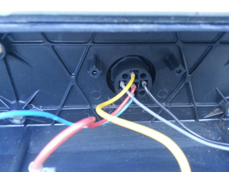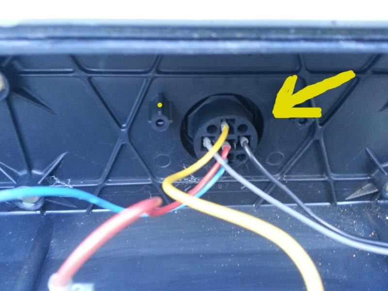 Das kannst´e doch selbst sehen, anhand der Kabelfarben, die findest Du doch im Rücklicht wieder. Das schwarze ist Masse, die anderen mußt du messen welches Spannung führt wenn Du Licht/Blinker/Bremslicht usw. einschaltest.