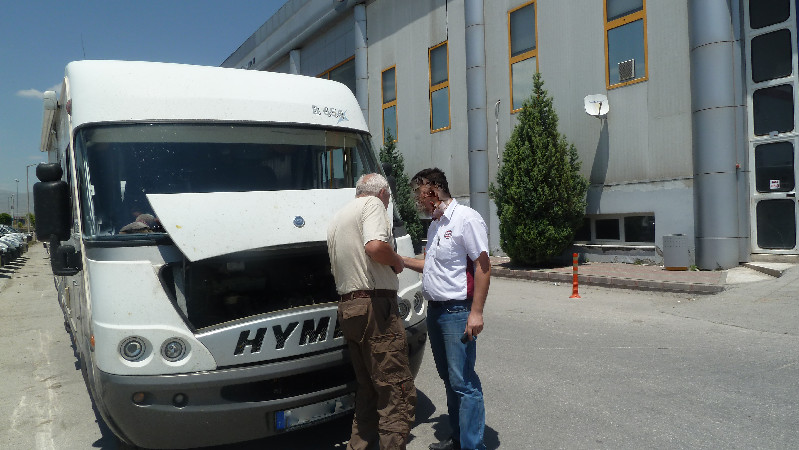 Der Nissan hat eine Hydraulikbremse, die über das Steuerventil unter dem Auto die Druckluftbremse des Anhängers regelt. Kompressor und ein Luft-Tank sind unter der Sattelaufnahme verbaut. Unter dem Trailer ist ein zweiter Tank. Ich kann mit einem separaten Schlauch und Reifenfüller auch die Reifen, die Luftfederung des Wagens und die Reifen des Wohntrailers aufpumpen. Ist wie bei LKW oder Trekern. Vor dem Abfahren nach längerem Aufenthalt muss ich allerdings den Wagen einige Minuten laufen lassen, um Luft aufs System zu pumpen. Ganz frühes losfahren ist also nicht, will ja keine Nachbarn wecken. ;-) In Italien habe ich auch schon schlechte Erfahrungen gemacht: Dreck im Tank. Vergaser gereinigt und hat genau 400 DM (in Lire) gekostet. Nach 100 km wieder kein Sprit :Filter saß noch zu. Hab dann selbst zwei Filter gekauft und hintereinander eingebaut. Dann kam ich bis nach Hause. Hab was vergessen: Vor 15 Jahren bei einem Renault 21 Nevada in Frankreich einen Zahnriemen wechseln lassen. Kostete 800DM. Die Werkstatt: Typische französische Hinterhofwerkstatt aber von Freunden empfohlen. Ich wäre da nie hingegangen, so unordentlich und dreckig war das da. In Deutschland hätte mich das 2000DM gekostet. Allerdings sagte der Meister in Deutschland: "Die haben bestimmt nicht die Lager gewechselt." Der Wagen hat es noch Jahre überlebt. Juni 2011 Türkei: Kühler verliert massiv Wasser 1300 Uhr Ankunft Fiat Werkstatt in Konya ![]() 1400 Uhr Unser Hymer kommt in den „Keller“ ![]() 1500Uhr Ich fahre mit einem Mechaniker und dem ausgebauten Kühler durch die Stadt auf der Suche nach einem passenden Kühler 1600 Uhr wir werden in einer unscheinbaren kleinen Werkstatt fündig. Ca. 90 Euro bis 1700 Uhr werden wir im Kundenraum mit Tee bewirtet. ![]() 1730 Uhr Die Werkstatt schließt. Panik bei uns: wo übernachten? 1735 Uhr Chef kommt, spricht englisch und teilt uns mit, dass 2 Monteure dableiben und den Auftrag haben das Fahrzeug noch heute fertig zu stellen. ![]() 1930 Uhr wir zahlen umgerechnet 85 Euro Arbeitslohn, statten die beiden Monteure mit ordentlichem Trinkgeld aus und verlassen Konya Wochen später: Check in meiner Werkstatt in Deutschland. Urteil: super Arbeit Da kommt doch Freude auf. :D :daumen2: Oktober 2011 auf dem Weg nach Tirol: Neben vielen negativen Schlagzeilen gibt es auch noch nette Menschen, die mal was stehen lassen um andere zu helfen. Nachdem wir uns noch mit Dosen...futter aus dem Hofer eingedeckt hatten stellten wir ein großes Loch in unserer hinteren Dachhaube über der Dusche fest. Beim Versuch die Klappe anzufassen bröselte sie in tausend kleinen Teilchen zu Boden. Man konnte sie mit blosser Hand zerkrümeln. Super, gleich am zweiten Tag. Der ÖAMTC konnte mir eine Adresse raussuchen von einer Fachwerkstatt ganz in der Nähe: Campershop, Camping und Freizeitartikel Fachwerkstatt für Camper und Caravan A-6401 Inzing - Schießstand 3 a Wir fanden den Betrieb und obwohl etliche Fahrzeuge auf dem kleinen Hof standen kümmerte sich sofort ein Monteur um unsere Lage und mit Glück fand sich auch eine passende Haube im Lager. Nach der Mittagspause, da fahren wirklich alle nach Hause zu Muttern, wurde der Austausch erledigt und wir konnten unsere Tour zu den Dolomiten weiterführen. Für die schnelle und saubere Arbeit sage ich gerne : :dankeschoen: Letzten Herbst in Dänemark: Beim Rangieren auf dem CP in Vejers Geräusche von der Servopumpe - im Dunkeln dann noch schnell nachgesehen, Ausgleichbehälter leer, d.h. Irgendwo ein Leck :twisted: . Am nächsten Morgen tut Servolenkung gar nix mehr, trotz guter Bordausstattung natürlich kein passendes Öl dabei - fahren mit ohne Öl wollte ich aber auch nicht, also den ADAC angerufen. So wirklich verstanden haben die meinen Wunsch nur nach Öl zwar nicht (die wollten mich direkt abschleppen - bestimmt ganz lustig auf einem Dünen-CP mit einem 3,40m hohen Mobil auf was auch immer für einem Trailer),haben das Ganze aber an die Dansk Autohjelp weitergeleitet. Die riefen umgehend zurück, sehr freundlich und kompetent, der gute Mann wusste sofort was ich will/brauche und versprach mir die schnellstmögliche Lieferung. Mittlerweile war es später Nachmittag, deshalb sagte ich ihm, der nächste Morgen würde vollauf genügen. Punkt 8.00 Uhr am nächsten Morgen ging das Telefon, der Pannendienst sei in fünf Minuten bei mir; schnell aus den Federn gesprungen, da war mein Öl auch schon da. Der Fahrer fragte noch, ob ich Hilfe bräuchte und düste dann wieder ab. Ach ja, als Verursacher des Ölverlustes hatte ich am Vortag einen Riss im Ausgleichsbehälter ausgemacht. Also notdürftig geflickt, Öl rein und zur nächsten Mercedes-Werkstatt aufgemacht. Ein kleinerer Betrieb in Varde, der Kundendienstmeister sehr nett, er würde mir sofort jemanden rausschicken. Monteur kommt, versteht im Gegensatz zum Meister leider aber weder englisch noch deutsch, erkennt das Problem aber sofort. Ruckzuck werden zwei Lkw's aus der Halle gefahren, ich reingewunken und mit Kaffee versorgt. Der Meister erklärt, sie hätten leider kein passendes Ersatzteil am Lager, sie würden mir das aber so Flicken, das wir ohne Sorgen unseren Urlaub fortsetzen können. Gesagt, getan! Mit Kabelbindern und Dichtmasse das ganze so gut geflickt, das es noch 3000km Urlaub problemlos überstanden hat - und das Ganze für umgerechnet 50,00€! Tolle Leistung zum Super Preis und vor allen Dingen sofort :daumen2: :daumen2: Ich weiß nicht, ob mir das bei einer deutschen (Vertrags-) Werkstatt auch so ergangen wäre... Süd-frankreich genauer in Beziers, Manschette der Antriebswelle kaputt, also ab zu Fiat, der Meister kennt sich mit Wohnmobilen aus, Er fährt in die Werkstatt und schon ist der Kamin ab, keine Probleme machen wir. Wurde auch gemacht nach dem erstmal beim Dachdecker eine Leiter geholt wurde, aber die haben das wirklich in der Werkstatt repariert und wußten dann nicht wie das Womo wieder raus kommen sollte, also noch mal Kamin ab, Womo raus und Kamin 