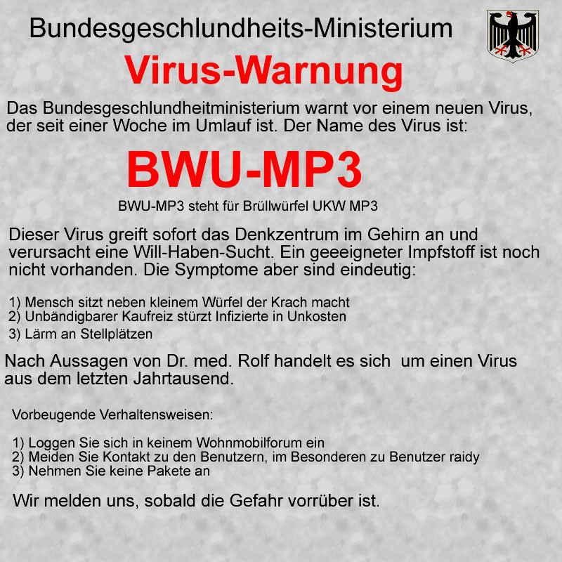 Hab gestern an der Saturn Kasse in Cento Oberhausen gesehen, wie einer den Brühwürfel oder war es ein Brüllwürfel :D , gekauft hat. Dort gibt es das Teil wohl auch in anderen Farben zum Preis von € 19,95. Traute mich nicht zu fragen ob er aus dem Forum ist :oops: Das Ganze hier hat schon was Sektenartiges.......selbst in FB wird das schon angesprochen, also im Sinne von Brüllwürfel :D Hallo didije, ich hab mir die Bedienungsanleitung eingescannt und vergrößert. Ich wollte sie dir schicken, geht aber wohl hier oder per KN nicht. Melde dich, wenn du die pdf-Datei haben möchtest. Brüllwürfelfan- Ulli So meines ist Heute angekommen und das Preis-/Leistungsverhältnis wurde für sehr brauchbar befunden. Ich werd es aber wohl doch zurückschicken weil, siehe unten... :lach: :lach: