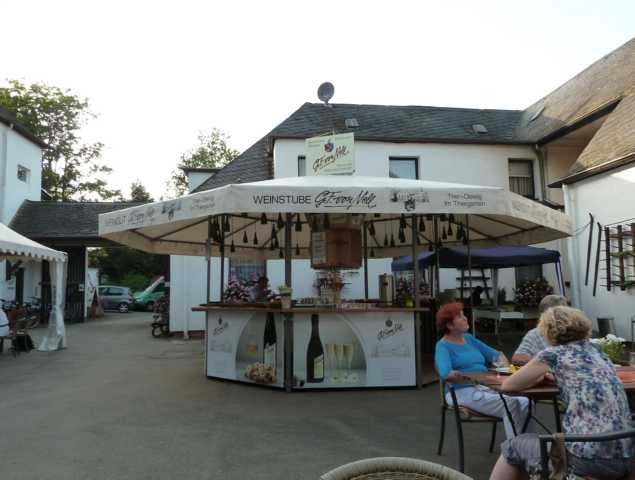 Als wir später bezahlen wollen, lädt uns die Familie Nell am Abend auf ihr Winzerfest zum Buffet ein. Es wurde uns erklärt, dass man essen kann, was man möchte u. dann einen Obolus nach eigenem Ermessen für das Essen bezahlen sollte. Die Getränke wurden regulär abgerechnet. Also das Essen war super, die Weine lecker, alles sehr gemütlich. Was will man mehr.