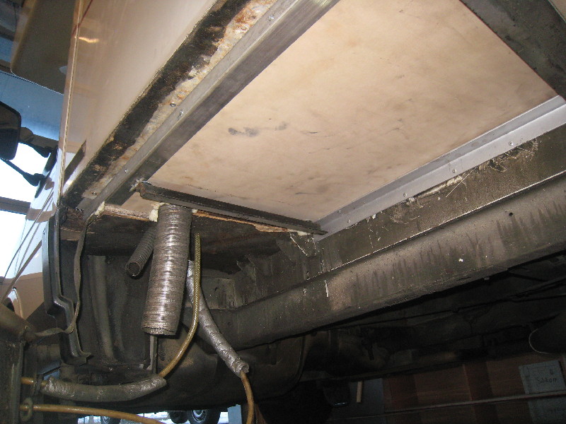 Nach einem langen und schweißtreibenden Reparatureinsatz, habe ich es heute endlich hinter mich gebracht und habe den Unterboden am Abwassertank erneuert. Der war so was von verfault. :(