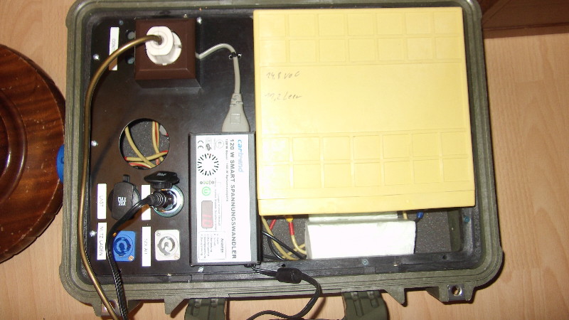 Hier mal Bilder von meinen Versuchen eines mobilen Koffers mit den Li-Blöcken von Winston.Als Laderegler diente ein Uhlmann Lithiumladeregler für Ip67