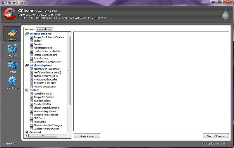 Meine Rechner waren bisher noch nicht auf dem Schießstand. :lach: :lach: Naja, Neu machen bei XP ist schon besser. Bekanntermaßen ist XP nicht sicher programmiert. Lagert zu viele Daten im Background ab usw. Wenn lange nix optimiert wurde läuft kein Optimierer fehlerfrei. Bei W7 nur wie hier: Defrag nur mit Auslogic Disc Defrag. Der ist intensiver als das Bordwerkzeug. fehlerfrei UND kostenlos im Netz. Dann erst Ashampoo WinOptimizer 2012 laufen lassen. Gibt`s auch kostenlos bei Ashampoo. Wenn der schlappe Lappi es nicht mehr schnallt, eben alles mit einem anderen PC holen, per USBStick laden, :mrgreen: fettich. hallo! defrag auslogic hab ich, geht wirklich gut, aber da ist doch schon ein optimizer dabei. ist der winoptimizer von ashampoo so viel besser. ????? bloß nicht diese Ashampoo oder Tune up Grütze !!!! ccleaner gibt es bei piriform.de das Programm hat bei mir auch noch nie einen PC zerschossen. Häkchen nach Anleitung setzen, den eingebauten registry cleaner auch benutzen. sehr komfortabel kann man auch nachsehen was sich so alles überflüssige im autostart eingenistet hat. sicher kann man eine großteil deaktivieren. vorher wie schon beschrieben datenträgerbereinigung machen. danke! cc cleaner hab ich und benutz ihn auch. :) Das ging ja schnell. Danke für Eure Unterstützung. Werde mich mal vorsichtig an mein Läpi herantasten. Defragmentiert hab ich bereits, aber Cleanern usw. zu nutzen hab ich mich noch nicht getraut. Werde sicherheitshalber eine Datensicherung durchführen (vorher :mrgreen: ) Julia