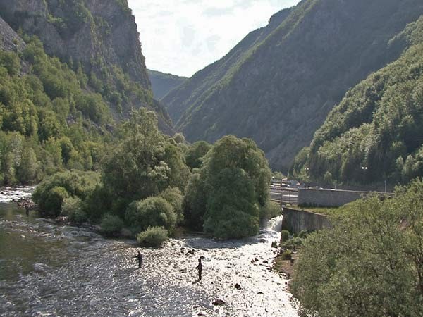 Blick von der Brücke in M-B. Links ist Unac Blick von der Ebene auf UNA abwärts