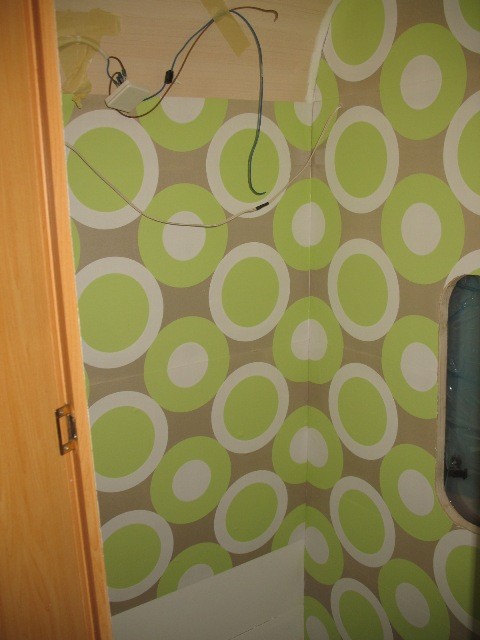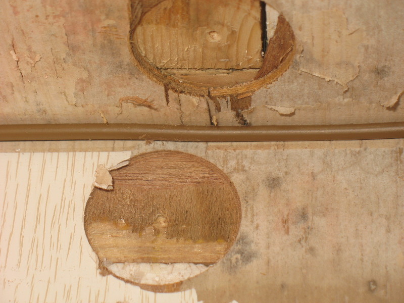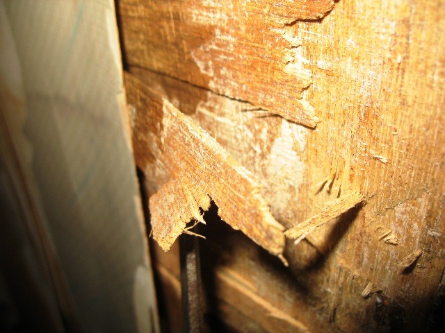 Im oberen Schrankbereich habe ich mit dem Forstnerbohrer Probebohrungen gesetzt und auf Nässe untersucht, denn dort kam die nachträglich eingeklebte Folie schon runtern und man hat Nässeränder gesehen. Ich bin total glücklich, denn es ist alles "furz"-trocken und das Holz ist hell und jungfräulich. :razz: :razz: