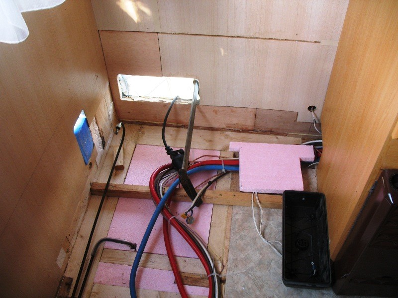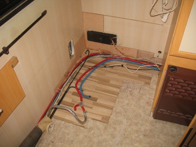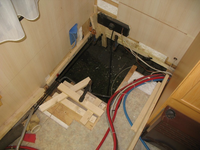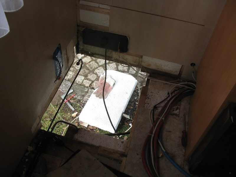 Der letzte Punkt hat mich fast mein Haar gekostet, weil ich es mir so sehr gerauft habe, als ich das nach der Fertigstellung real erlebt und bemerkt habe! Es ist nicht mal Wasser an der Fußbodenrohrdurchführung nach unten auf die Straße getropft (weil so gut abgedichtet), sondern das Abwaschwasser kam am Gaskasten (auf der der Küche gegenüberliegenden Seite) rausgetropft! Es war eine Sache von 3 Minuten nach Ablassen des Spülbeckens, dass das Wassser im Fußboden einmal quer durchs Mobil gelaufen und dann dort zu Tage gekommen ist. Nun muß ich mir Gedanken machen, wie ich den Fußboden wieder trocken bekommen, damit es nicht wieder anfängt zu faulen oder zu riechen.
