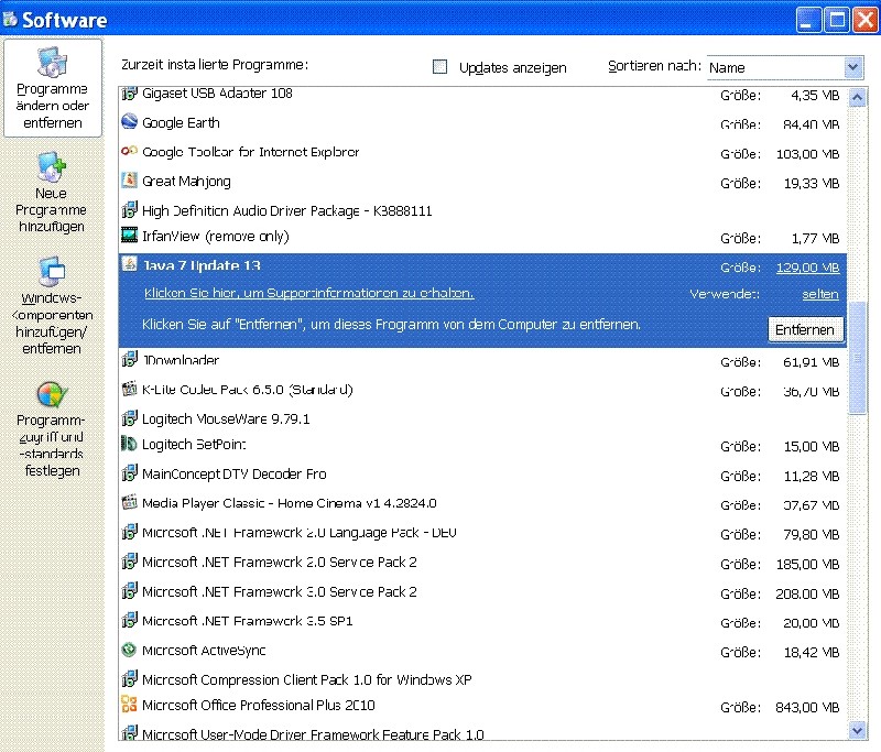 Schön ....aber ich würde ja auch Java runterpusten....wofür brauch man Java ????? Welche Programme sind von Java abhängig???? Danke Dirk, Bernd und den anderen Warnern hier. Gerade seit wenigen Stunden aus dem Kurzurlaub zurück, weiß ich schon beim ersten von 11 Computern, daß die "Sicherheitsaufforderung" von Java nicht ohne Löschen des alten "Java" funzt. Dabei wollte ich doch morgen was ganz Anderes arbeiten........ 8) . Menno Ich bin ja recht unbedarft, was den PC angeht. Ich hab nun nachgesehen und finde unter Programmen nix von Java. Find ich das woanders? Ich kenn diese dampfende Kaffeetasse, also hab ichs schonmal gesehen, aber wo??? Christel, Du wirst die Kaffeetasse wohl unten rechts in der Task-Leiste gesehen haben. Wenn sie jetzt nicht mehr sichtbar ist, solltest Du Dir keine Gedanken machen. Java von Oracle ist ein Tool für java-basierte Anwendungen, die Du wohl eher nicht nutzt. Aber schau hier und prüfe es selbst nach: --> Link Felix52 :) Hallo, Updates sind installiert. Finde aber von Java noch ein "JavaFX 2.1.1" auf meinem Rechner. Kann da jemand was zu sagen? Danke und aus dem Sauerland Tommy Die alten Versionen von Java müssen dringend runter. Und Strato will Java um meine HP zu laden, was für alternativen gibts da? Danke für die Info. In der Liste hab ich kein Java. Alles ist gut.