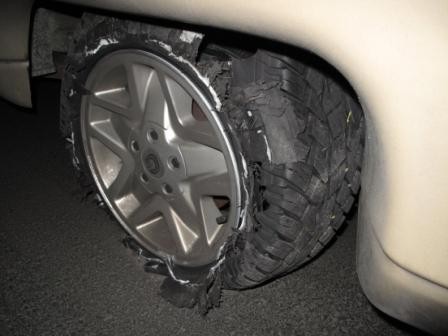 Reifen war total zerfetzt. Da helfen Pannensets gar nicht. Ohne Reserverad werde ich nie los fahren, egal wohin.