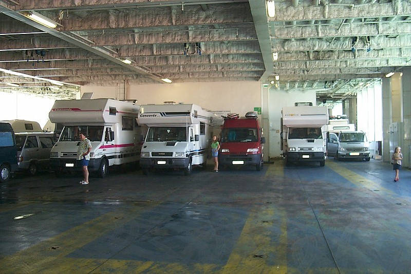 wenn alles normal läuft, du in Igou um Mitternacht als Letzte an Board gehst und in Ancona als Erste von Bord, dh gerade noch vor den LKW, die sofort schon beim Kreuzen der Bahnlinie den ersten Stau verursachen, der sich dann an jedem Lichtsignal Richtung Autobahn wiederholt.