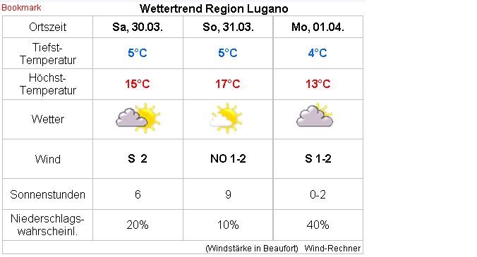 Das machst Du richtig! Ich habe gerade im BR gehört, dass diese sibirische Kälte mit dem Wind erstmal um den Erdball herum sausen muss, bevor sich das Wetter bei uns ändert. 8 Tage ist sie nun schon unterwegs, in 6 Tagen wird es besser. In Baden-Baden werden es 22°C an Ostern, 11°C in Baden und 11°C ....in Baden. :D Frohe Ostern Albert --> Link wie immer an Ostern sind wir in Südfrankreich ...und sooo schlecht ist die Vorhersage nicht .. ausserdem haben wir die Erfahrung gemacht , dass es vor Ort meist wärmer ist , als das vorhergesagt wurde ... morgen gehts los ...und wenn ich heim komme will ich endlich meine Harley anwerfen ...womo wird dann wieder für den nächsten Winter eingemottet ...Saison adee .. überlasse die überfüllten plätze dann euch :-) Angeblich die erste "offizielle Wetterprognose" für Ostern 2013 .. Sieht gar nicht mal soooo schlecht aus, Besserung ist in Sicht :) --> Link