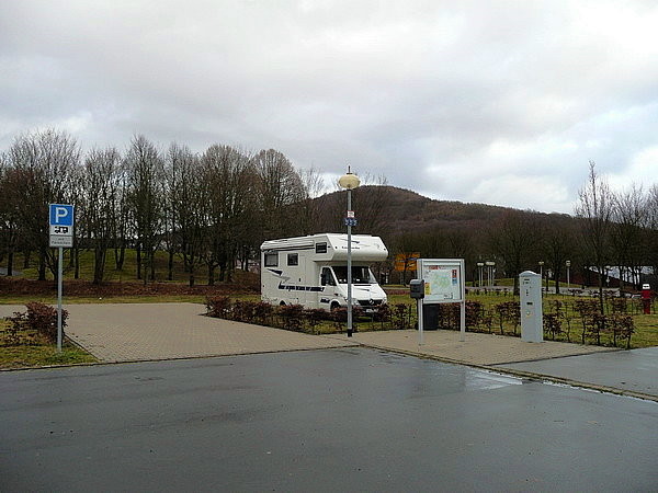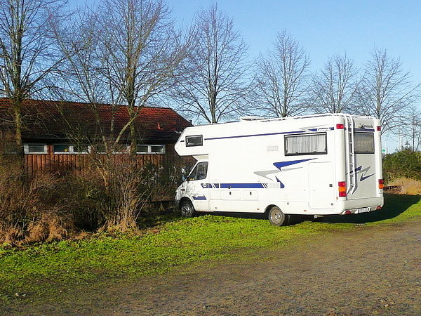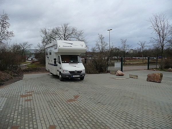 Die Fahrt verläuft problemlos, es ist zwar dichter Verkehr und heftiger Wind, aber die Straßen sind frei und wir kommen gut voran. Auf dem etwa halben Weg in Höhe Kassel beschließen wir zu übernachten. Das Navi findet uns einen SP in Baunatal am Parkstadion. Wir sind dort zunächst ganz allein, erst im Laufe der Nacht gesellt sich ein weiteres Womo zu uns (natürlich 10 m neben uns - obwohl "alles frei" - ein "Kuschler" ( :wink: ) halt )