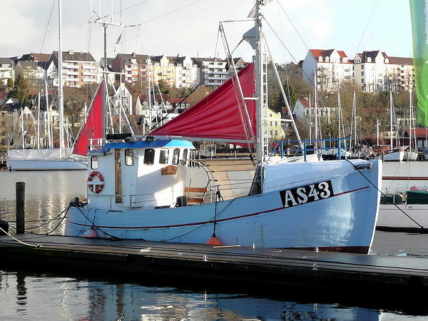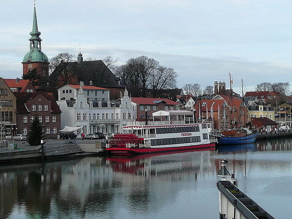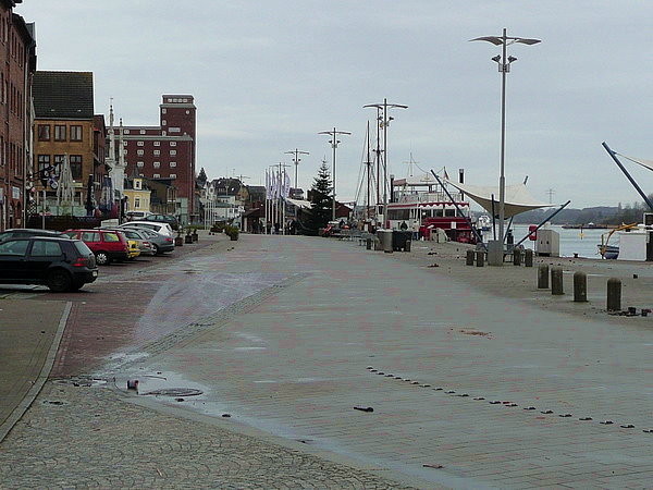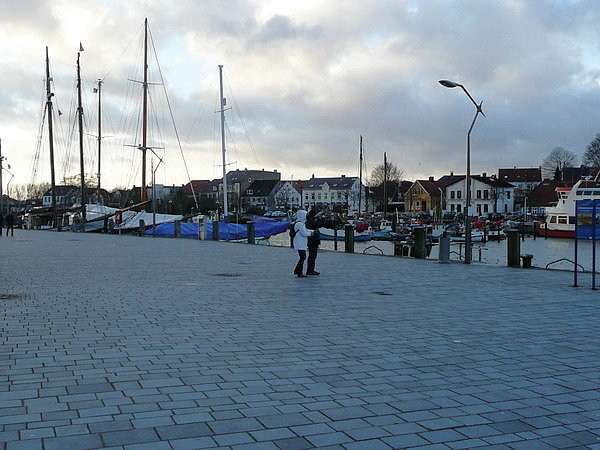Eckernförde ist ein sehr schönes altes Städtchen, gefällt uns sehr gut. Wir schlendern durch die Fußgängerzone, alle Geschäfte sind heute (Sonntag !) geöffnet. Natürlich fällt Evi in einem Geschenkladen ein, später gibt´s in einer großen Ladenpassage noch eine warme Mütze mit Bommel für sie.