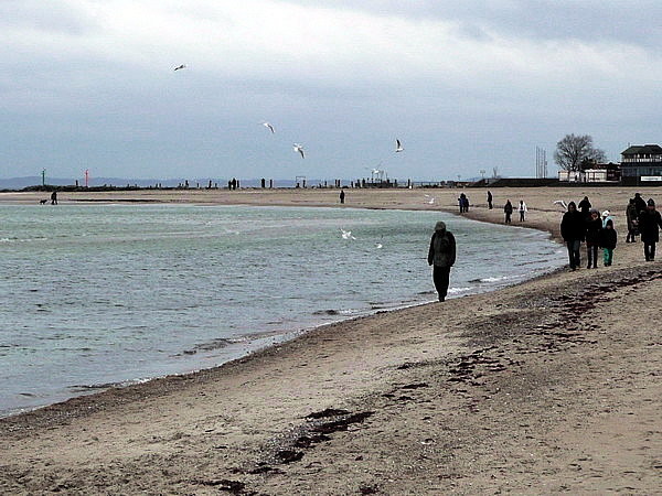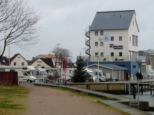 Wir entsorgen und tanken Wasser, dann rücken wir ab aus Kiel in Richtung Laboe. Laboe wird als wunderschönes Sommerstädtchen beschrieben, in dem auch im Winter reger Betrieb sein soll. Na ja .. von richtig „rege“ haben wir wenig gesehen. Es liegt direkt an der Kieler Förde zur Ostsee hin und ist den Geschäften und Hotels nach zu urteilen eher „mondän“. Wir parken auf dem SP am Marine-Ehrendenkmal und latschen am Ufer entlang in den Ort.