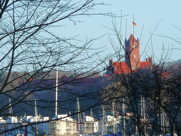 Heute wollen wir nach Kiel … alles ganz easy: entweder zu Fuß oder mit dem Rad am Hindenburgdamm entlang ca. 7 Kilometer in die Altstadt, oder per Bus. Obwohl sehr sonniges Wetter ist, ist es ziemlich kalt bis arschkalt – wir nehmen den Bus. Der fährt in ein paar Hundert Metern ab, flott sind wir im Zentrum.