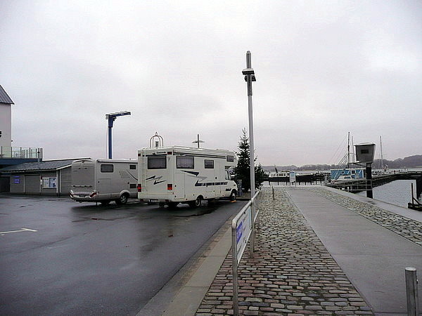 In Eckernförde finden wir zunächst den SP beim Zentrum. Der gefällt uns aber nicht, als Ausweiche haben wir einen 4-Sterne CP auf der anderen Seite der Bucht im Visier, da wollen wir hin. Trotz Navi und trotz Ausschau nach CP-Zeichen finden wir den Platz nicht. Da, wo er sein soll, versperrt eine Schranke die Zufahrt, ein Schilderhalter (für den CP) ist leer. Entweder gibt´s den nicht mehr …. oder wir finden ihn nicht, auch außenrum geht´s nicht. Blöd, also wieder zurück auf den (ungeliebten) SP. Der ist sehr zentral, es sind nur einige Schritte bis in die Innenstadt, aber sehr laut, direkt neben der Bundesstraße.