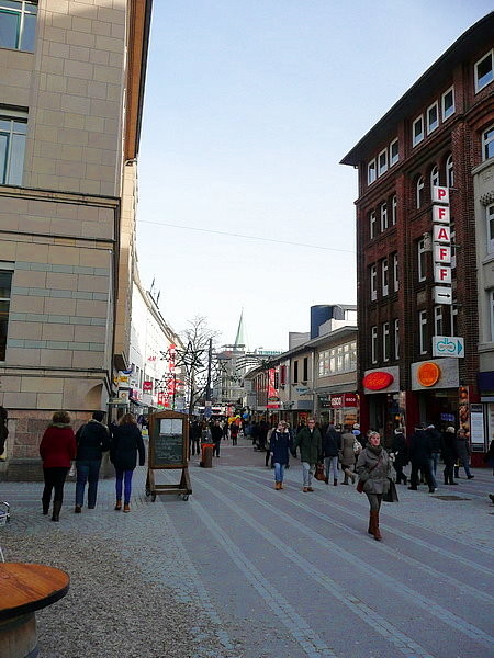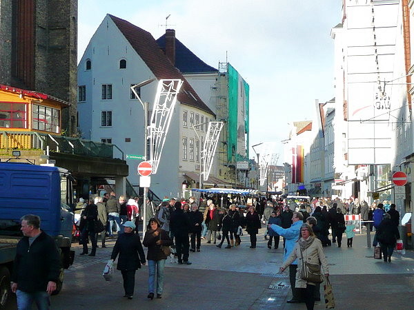 Kiel wurde im WW-II ziemlich platt gemacht, entsprechend „neu“ ist die Altstadt. Wir schlendern die Fußgängerzone auf und ab und genehmigen uns als Frostschutz mal einen Glühwein und Eiergrog, die uns ein wenig in den Kopf steigen, jedenfalls spüren wir den Alkohol (jedenfalls wurde DARAN nicht gespart :razz: )