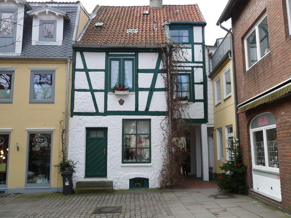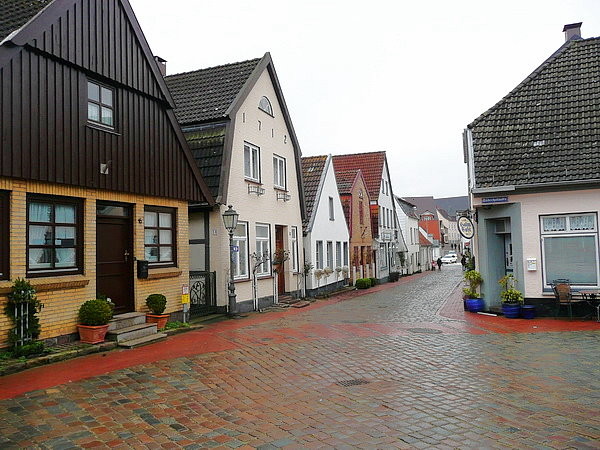 Morgens hatte mir ein Einheimischer einen Spaziergang nach Holm, dem alten Fischerviertel von Schleswig empfohlen. Es sind nur wenige Schritte dorthin – sehr nett! Kleine Häuschen rund um den alten Friedhof, malerisch angeordnet. Erst beim zweiten Blick erkennt man, wie tief die Häuschen doch sind und reichlich Fläche für Bewohner und (früher wohl) Schiffe und Gerätschaften bieten. Außerdem finden wir dort ein Fischlokal, das geöffnet hat, dort wollen wir aber erst heute Abend hin.