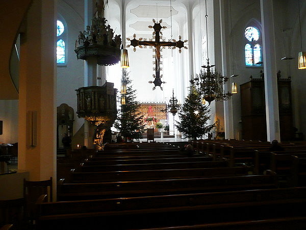 Beim bummeln durch die Stadt schauen wir auch in die Nikolei-Kirche, die auf den Grundmauern der zerstörten alten Kirche neu errichtet wurde.