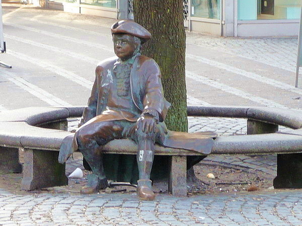 Wer dieser Herr ist, der da in Lebensgröße so still auf der Bank mitten im Zentrum sitzt … ?