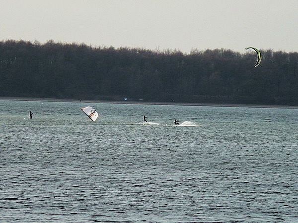 Brrrr … ein paar Kitesurfer „spielen“ sich da im Wasser. Da friert´s einen ja vom zusehen …
