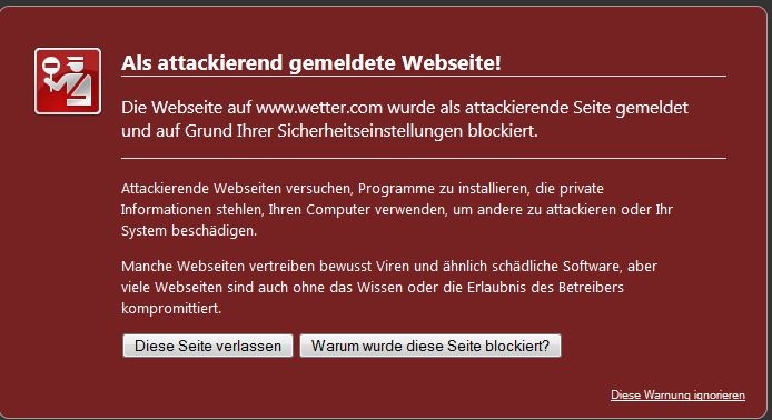 Ich wollte gerade wie gewohnt die Wetterseite von wetter.com öffnen, und erhielt diese Warnung: ![]() Soll man diese Seite jetzt meiden? Ich habe auch nichts Weiteres angeclickt.