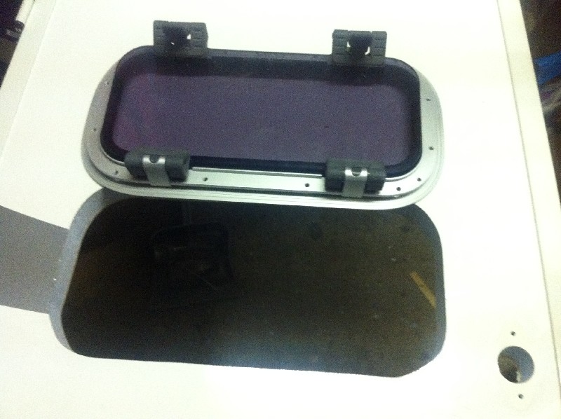 ich baue gerade in meine Heckgaragentür ein kleines Fenster aus dem Schiffsbau (Lewmar Portlight zum öffnen) ein damit es meiner Kleinen im Etagenbett nicht so dunkel ist. Ein Seitz Fenster gab es nicht in so klein.