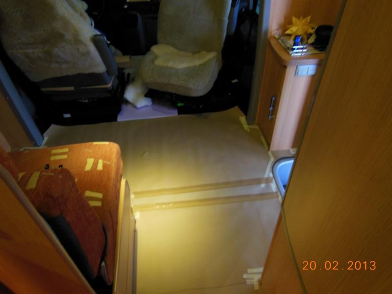 Pelle1, wo wohnt Ihr denn. Wenn es nicht soweit von 57074 Siegen weg ist dann werde ich Dir kurz dabei helfen. (Bin gelernter Raumausstatterund habe bei mir im Womo auch verlegt, auch bei Bekannten schon mehrfach). Klaus Hallo, ich habe mir auch eine Schablone aus Karton angefertigt und dann Restposten ganz hochwertigen Teppichbodens gekauft und zugeschnitten. Das hat sich gelohnt; vom Gefühl und von der Optik her! Klaus, das ist ein nettes Angebot von dir. :top: Hallo Klaus, Danke für das Angebot aber Du bist zu weit weg !! Pelle @Klaus, daß ist aber ein freundliches Angebot von dir. Ich bin doch immer wieder überrascht, wie schnell man hier im Forum Hilfe bekommt. Wenn schon Teppich im Womo, dann nicht am Geld sparen, es zahlt sich aus. Auf keinen Fall Schlingenware, die Mutti wird es euch danken. Albert so heute musste ich ran. Erst einmal eine Schablone gefertigt, Fummelarbeit . Demnächst geht es weiter. ![]() ![]() ![]() ![]() Pelle Ahh ja, Mr. pelle, dass sind schon Knicke, und vor allem Schrägen ... das kriegste mit nem Flicklerteppich oder sonst. Läufer nicht gebacken. Bei mir isses wesentlich einfacher aufgeteilt, daher. Aber sauber schabloniert haste da ... viel Erfolg ....