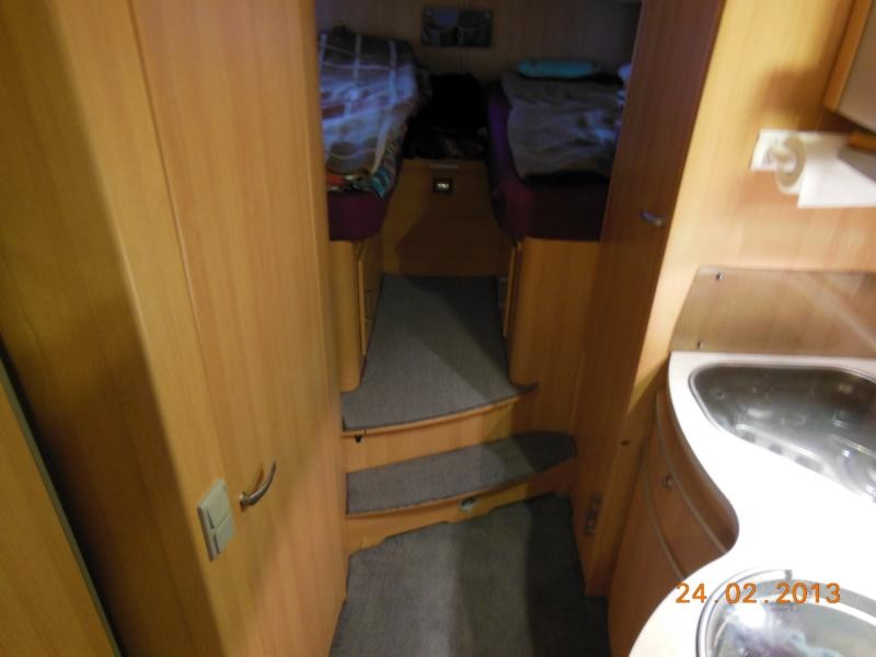hallo klaus, kannst du denn auch ketteln ? grüßle jorgito[/quote] Klar, aber die Arbeit bekommst Du echt fast an jeder Ecke geboten. Die guten Raumausstatter haben alle noch Kettelmaschinen, vor allem da wo der Vater noch im Betrieb mit dabei ist. Ansonsten kann ich Dir auch noch Adressen aus meinen Büchern geben. Brauch halt dafür Euer PLZ-Gebiet.[/quote] hallo klaus, wenn ich zu hammer gehe, dann sage die immer die müßten das wegen dem ketteln einschicken. ich wohne im plz bereich...29525 oder auch 21354 oder auch 38518....man lebt eben überall mit dem womo gell grüßle jorgito[/quote] ich schaue morgen in meiner Liste nach einem guten Händler, jedoch habe ich den Flotex ganz vergessen. siehe den Thread über meinem. Den Boden kann ich natürlich auch nur empfehlen, kein Ketteln, Keine Fransen nix, der Boden ist fürs Womo geradezu wie gemacht. --> Link Hallo, :tach: wir haben in unserem Womo Teppichfliesen verlegt. Jede Fliese einzeln ausgemessen und eingepasst. Nun ja, die Fläche ist nicht sehr groß, aber auch verwinkelt. 1/2 Tag Arbeit. :D Wir hatten noch einen Karton Tretford Fliesen auf dem Dachboden liegen, die jetzt hier zum Einsatz gekommen sind. --> Link Und so sieht es aus. ![]() ![]() Die Verzerrungen kommen durch die Kamera. :roll: Die Fliesen lassen sich super schneiden und brauchen nicht gekettelt und fixiert werden. Sie sind auch unempfindlich gegen Verschmutzung. Und sollte tatsächlich mal was draufkommen, kann man sie mit der Duschbrause reinigen. Gelegt haben wir sie im letzten Sommer. Die Fotos sind von heute. :D Ja ich gestehe, habe vorher nicht ausgesaugt. :lol: Karlo :daumen2: sieht gut aus. Und sie wölben sich auch nicht ? Pelle Sieht wirklich super aus, Karlo ... und nein, ich glaube kaum, dass sich diese Teppichfliesen wölben, verwerfen können, weil ein stabiler Unterbau gegeben ist. Wenn ich irgendwann meine Flickerlteppiche nicht mehr sehen kann oder haben will, kommt für mich genau das in Frage .... Hatte vor (VIELEN) Jahren mal ein Teil meiner (ersten) Wohnung so mit Teppichfliesen ausgelegt, ging sehr einfach, schnell und da hat sich auch nix gewölbt ..... Hallo Pelle, die Fliesen wölben sich überhaupt nicht. :D Karlo |