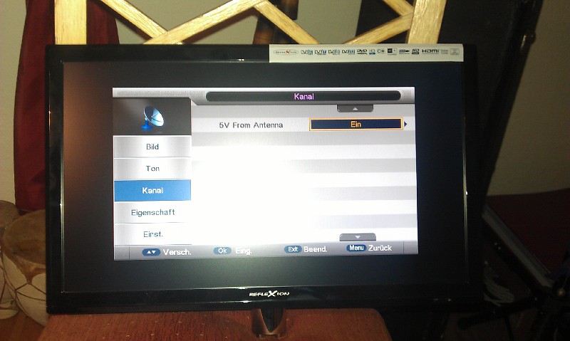 Hallo Chrisk, den Fernseher kann ich nur empfehlen. Den habe ich mir letztes Jahr im April von TV Grawe aus Datteln bei Dortmund für etwas über 200€ geholt und bin damit immer noch sehr zu frieden :D Bzgl. der 5V einspeisung kann ich Dir leider nichts sagen das ich das bis dato nicht genutzt habe. Versuche es doch mal direkt: --> Link der ist auch Rundfunktechniker der "alten Schule" evtl. kann er Dir mehr sagen. Super günstige, flexible TV Halterung hatte ich mir auch gleich mitgenommen. Dietmar Hy Dietmar.....nicht Chrisk hatte nach dem Gerät gefragt, das war ich :wink: Ich werde ihn mir in den nächsten Tagen auch holen. Das Teil hat `ne super Ausstattung & macht optisch auch was her. Ich mag halt die TV`s nicht, wo man rundum 10cm Rahmen hat. :wink: Da Du ja eben dieses Gerät hast, kannst Du mal bitte in den DVB-T Einstellungen schauen, ob es da einen Menüpunkt bzgl. der 5 V gibt. Ich sage schon mal "DANKE".