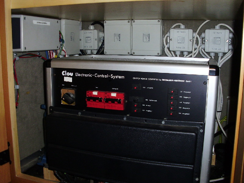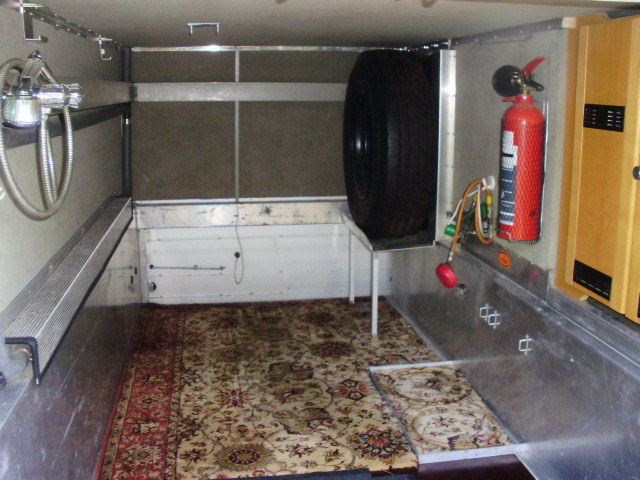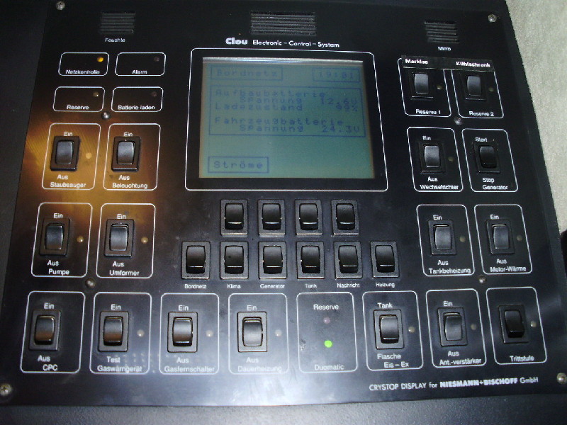 matthias4 hat es schon gut erklärt. :ja: Der luftdicht abgeschirmte Gasflaschenkasten zum Wohnraum ist die Garage selbst! Be-u.Entlüftung erfolgen über 2 Bodenlöcher >100cm², eins unter den Flaschen (Teppich) und eins unter dem Reserverad. Die Feuerlöschermontageortprofis unter euch möchte ich dahingehend beruhigen, dass es sich auf dem Bild um 1/3 der Feuerlöscher handelt. Vielleicht war dieser für die Elektrozentrale zuständig, ich weiss es nicht. Genauso wenig weiss ich, ob die Gasflaschen nicht über eine Sprinkleranlage gesichert waren. In den 4,5Jahren, wo das Fahrzeug in meinem Besitz war, wurden wegen dem grossen Gastank nie die Flaschen aufgedreht, jedoch als Reserve im Winter rein gestellt. Elektroschrank: ![]() Bedienpanel: ![]() |