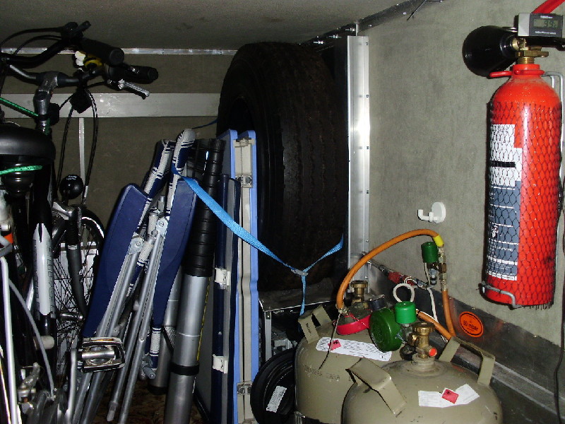 nein ! Der Feuerlöscher direkt über den Gasflaschen macht natürlich auch richtig viel Sinn :roll: Ich glaube wenn es dort ein Problem mit den Gasflaschen gibt, ist der Feuerlöscher eh nur noch Deko :D