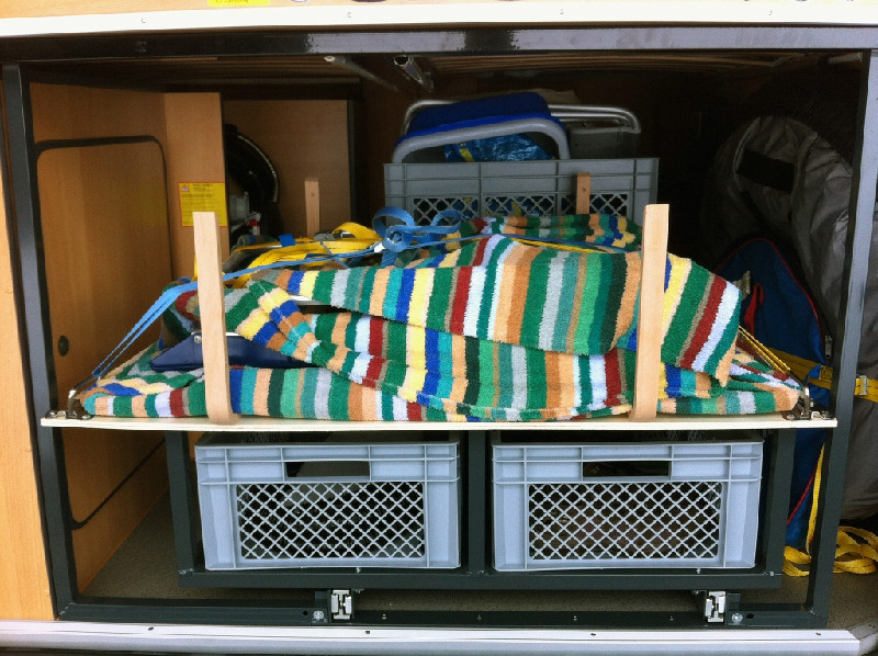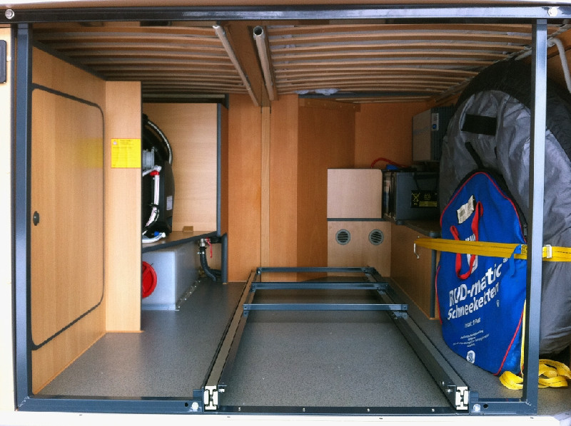 seit längerer Zeit nervte mich der Laderaum in unserem CS Luxor. Er ist für uns gross genug, fast zu gross, aber immer, wenn man etwas benötigt, muss man um- oder ausräumen. Zur Info für die Nicht-Fachleute: Wir sind "Längsschläfer", der Laderaum unter dem Bett ist ca. 1600 mm lang oder besser gesagt tief.